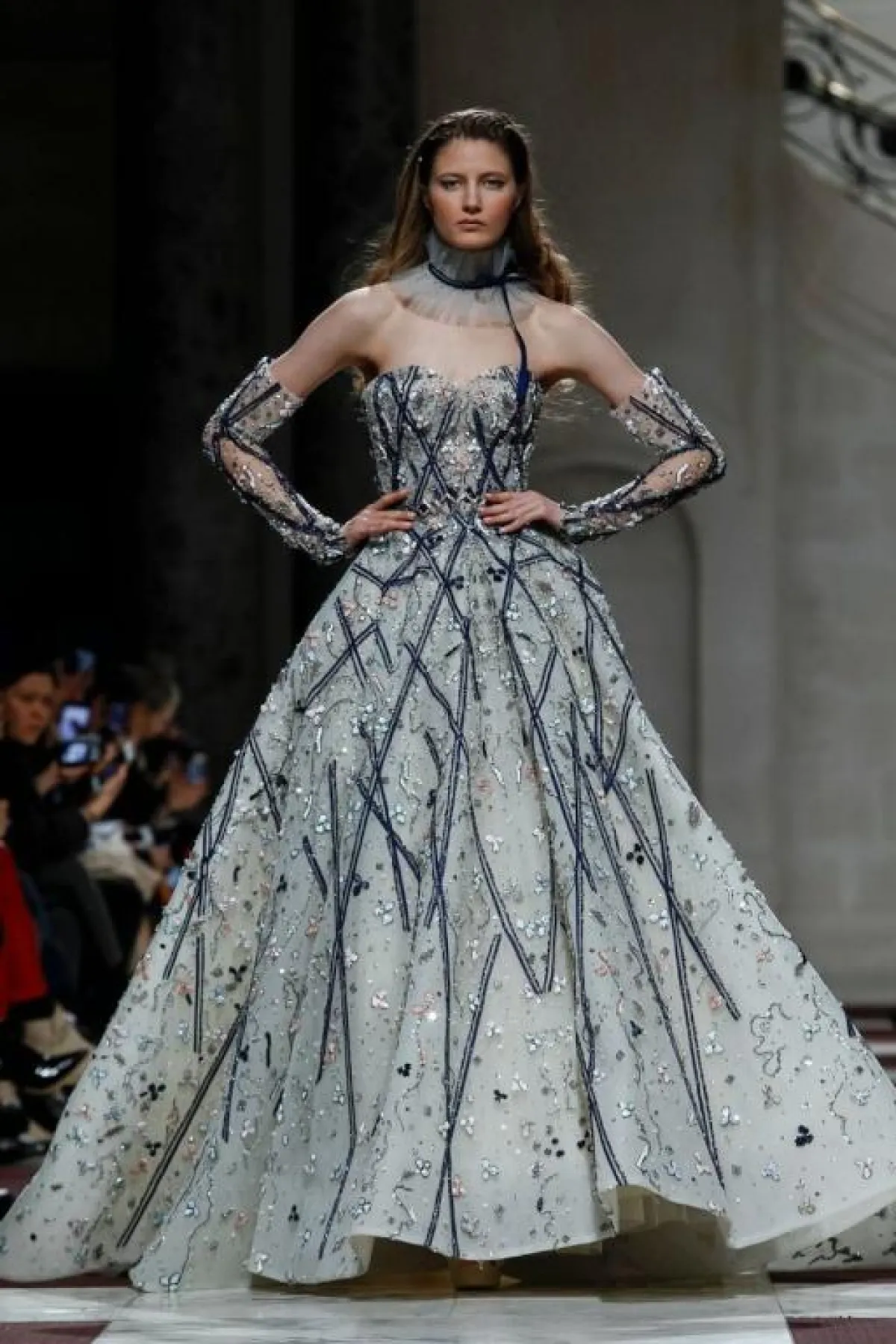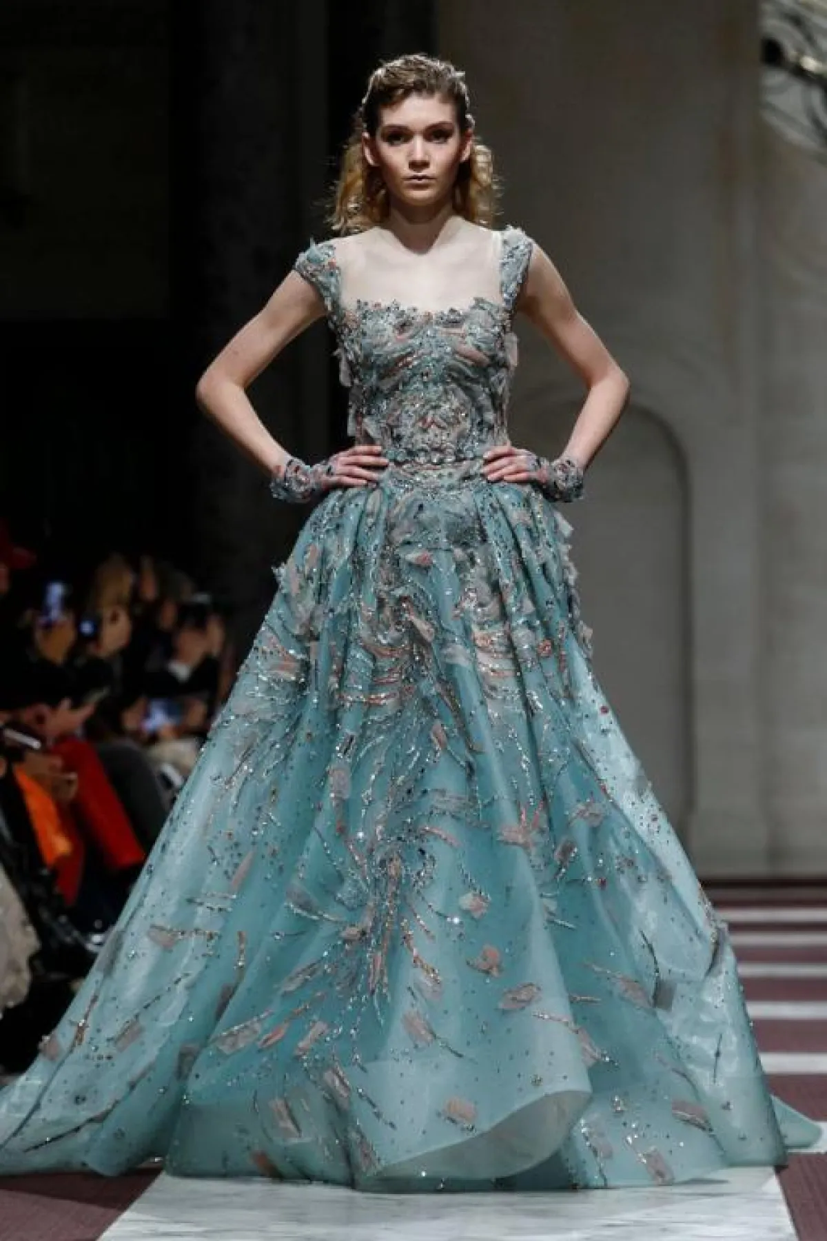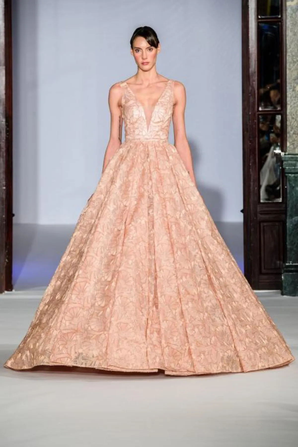 قدم المصمم اللبناني زياد نكد Ziad Nakad فساتين خطوبة منفوشة ومرصعة بتطريزات برّاقة تخطف الأنفاس، ومنها المزين بلمسات الريش والتفاصيل البارزة.