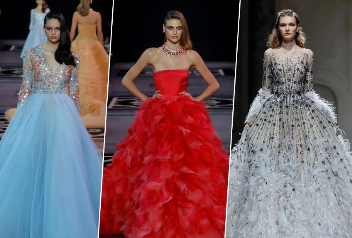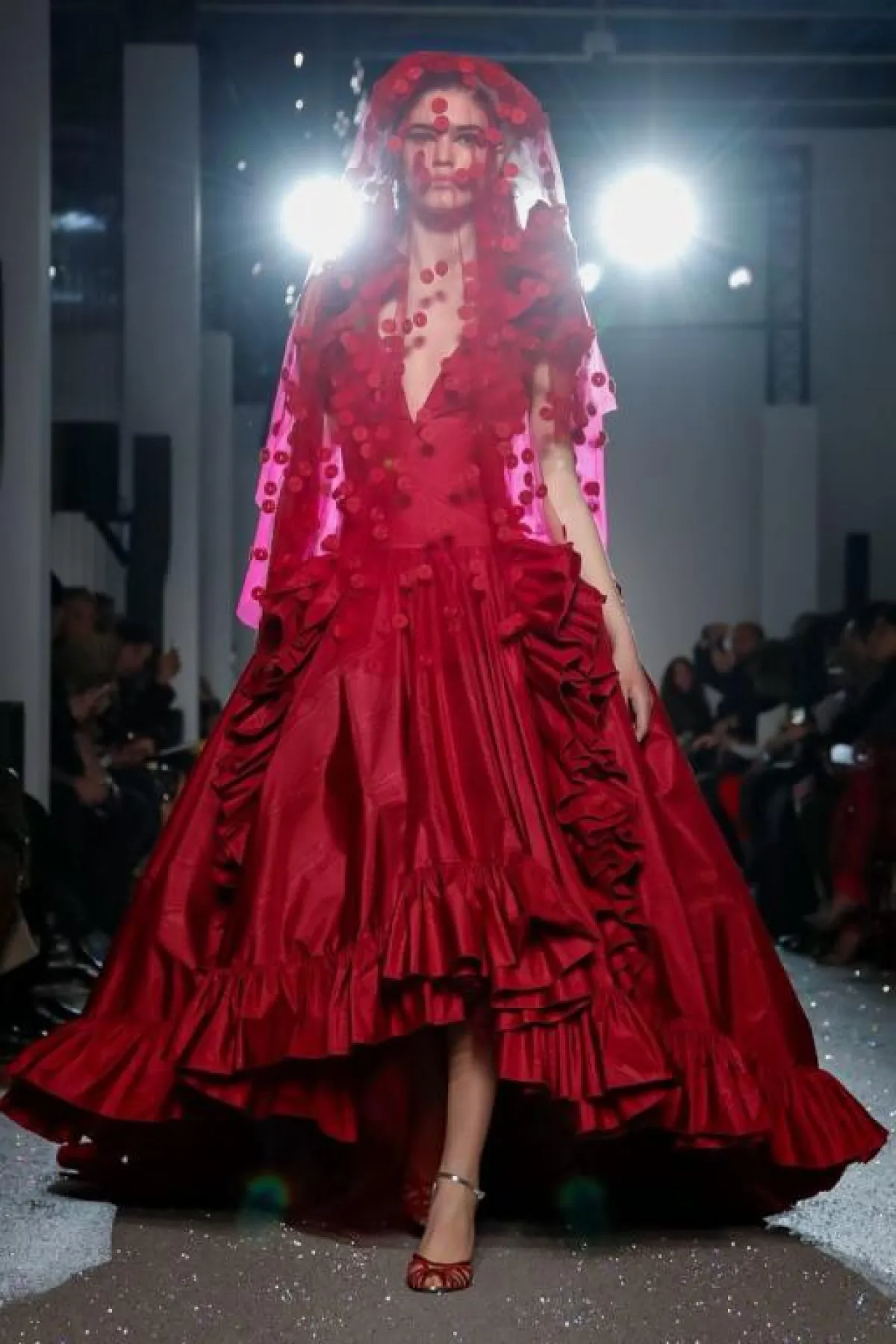 أحببنا الفساتين المنفوشة بالألوان النابضة بالحيوية، مثل الفساتين الحمراء من جورج حبيقة Georges Hobeika، وجيامباتيستا فالي Giambattista Valli.