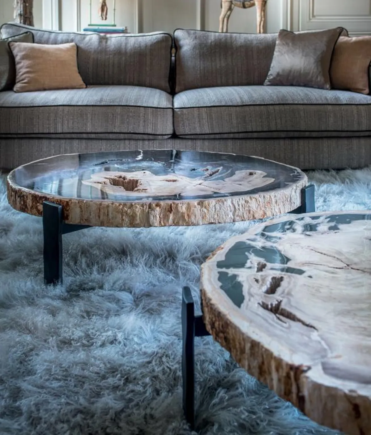 في ديكورات مجالس عصرية لمنازل خليجية، يحلو حضور قطع الفرو والشالات على الكنب والكراسي، أو حتَّى على الأرضيَّة، بغية إشاعة جوِّ شتوي.