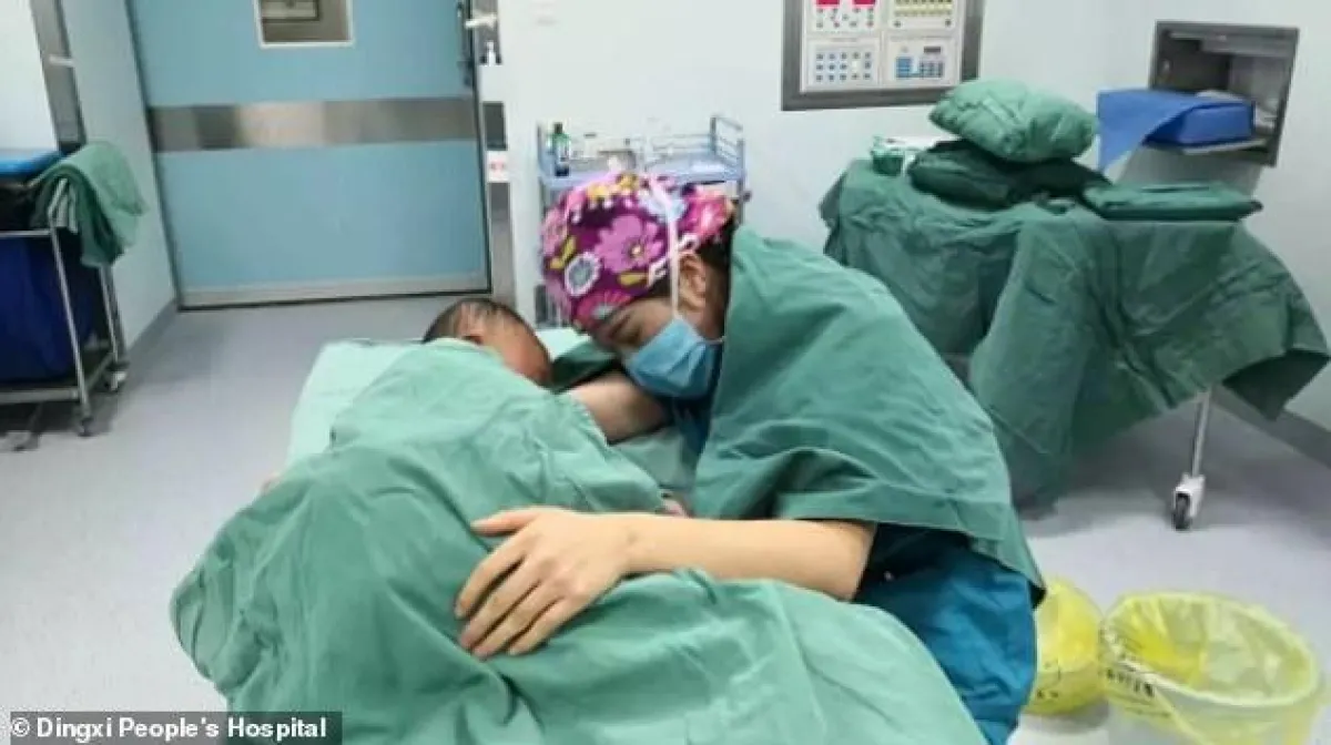 وفي لقطة أخرى، انتشرت صورة لطبيب يحمل طفلاً عمره عام واحد بين ذراعيه وهو يواصل العمل أيضاً، كان الطبيب «زانج روجين»، 28 عاماً، يعمل في مستشفى تايتشو الشعبي في مقاطعة جيانجسو، عندما لم يتوقف الطفل المريض عن البكاء في وحدة العناية المركزة، وقال «زانج»، إنه من الطبيعي أن يشعر الأطفال بالقلق وهم في المستشفى بدون أمهم وأبيهم، وفى هذه الحالة، من الطبيعي أن يصبح الأطباء والممرضات والديهم المؤقتين.