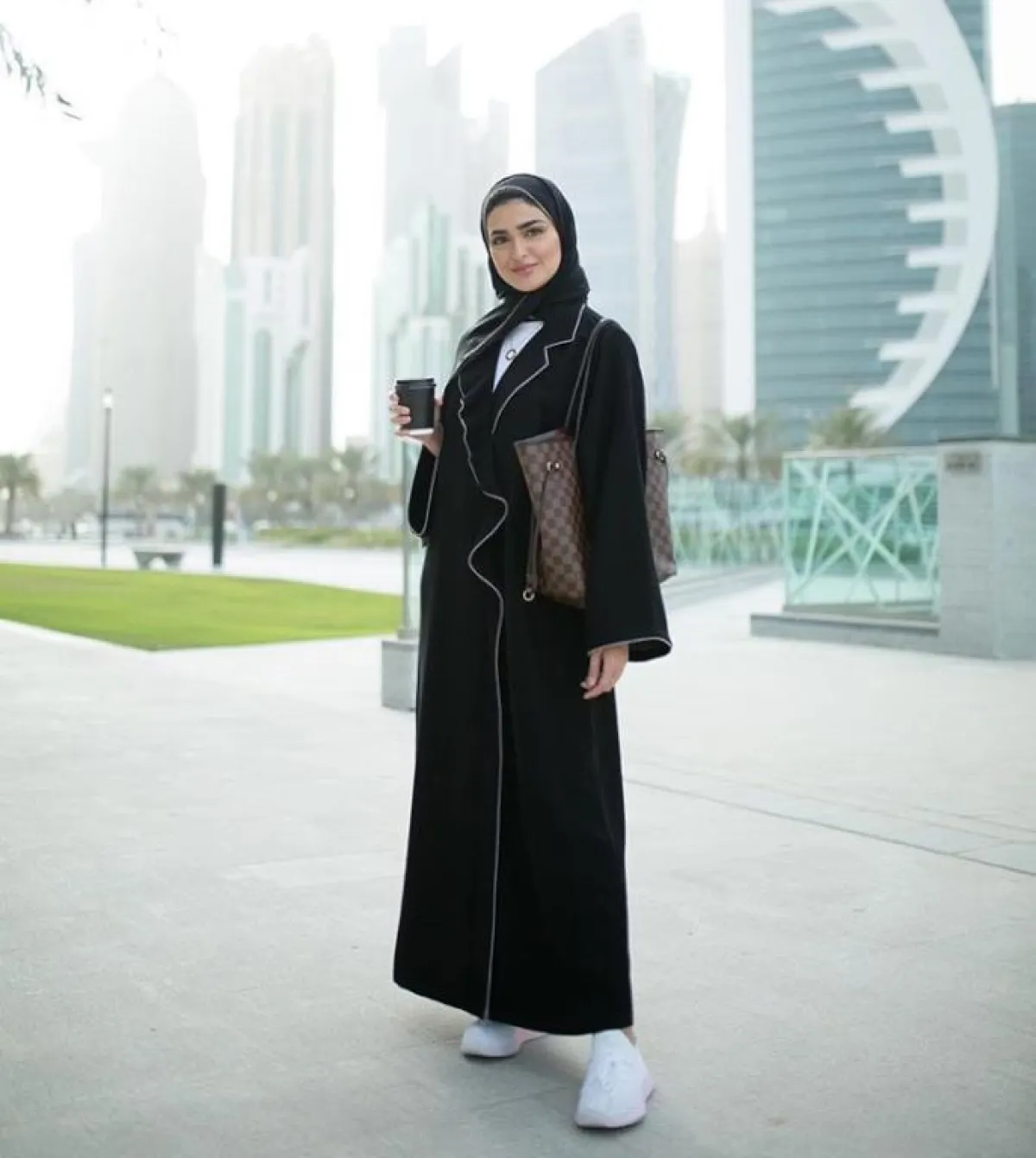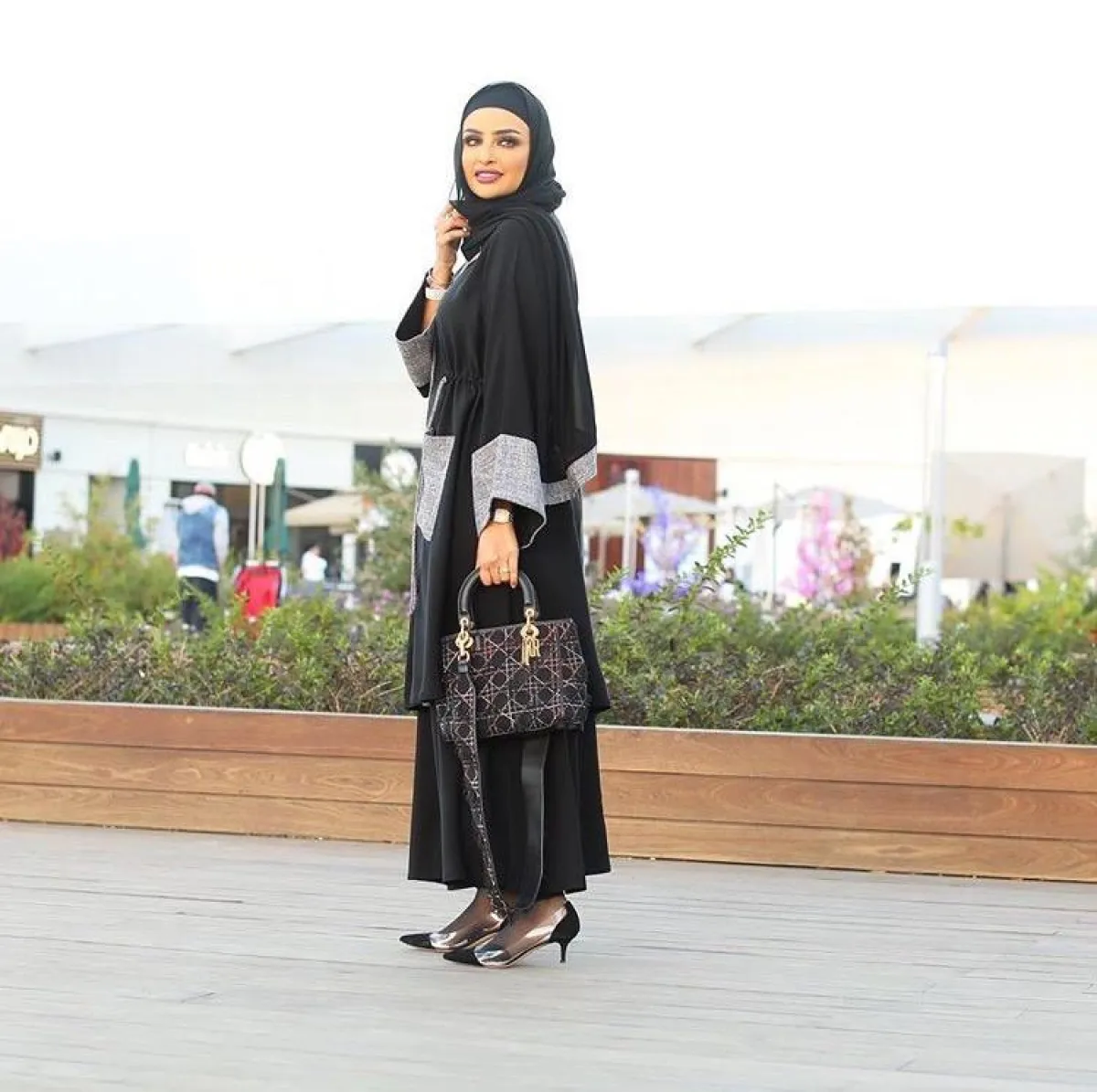 بأحدث ظهور لها، اختارت الفاشينيستا الخليجية سندس القطان العباية السوداء عنوانا لإطلالتها، مع لمسة لقماش الصوف الرمادي الثلجي، ارتدت معها حجاب شيفون باللون الأسود، وهو لون سندس المفضل مع العبايات، واختارت شنطة متوسطة الحجم من ديور Dior وشوز سوداء ناعمة، كخيار أنثوي يضفي أجواء راقية ومترفة على إطلالتها ككل.