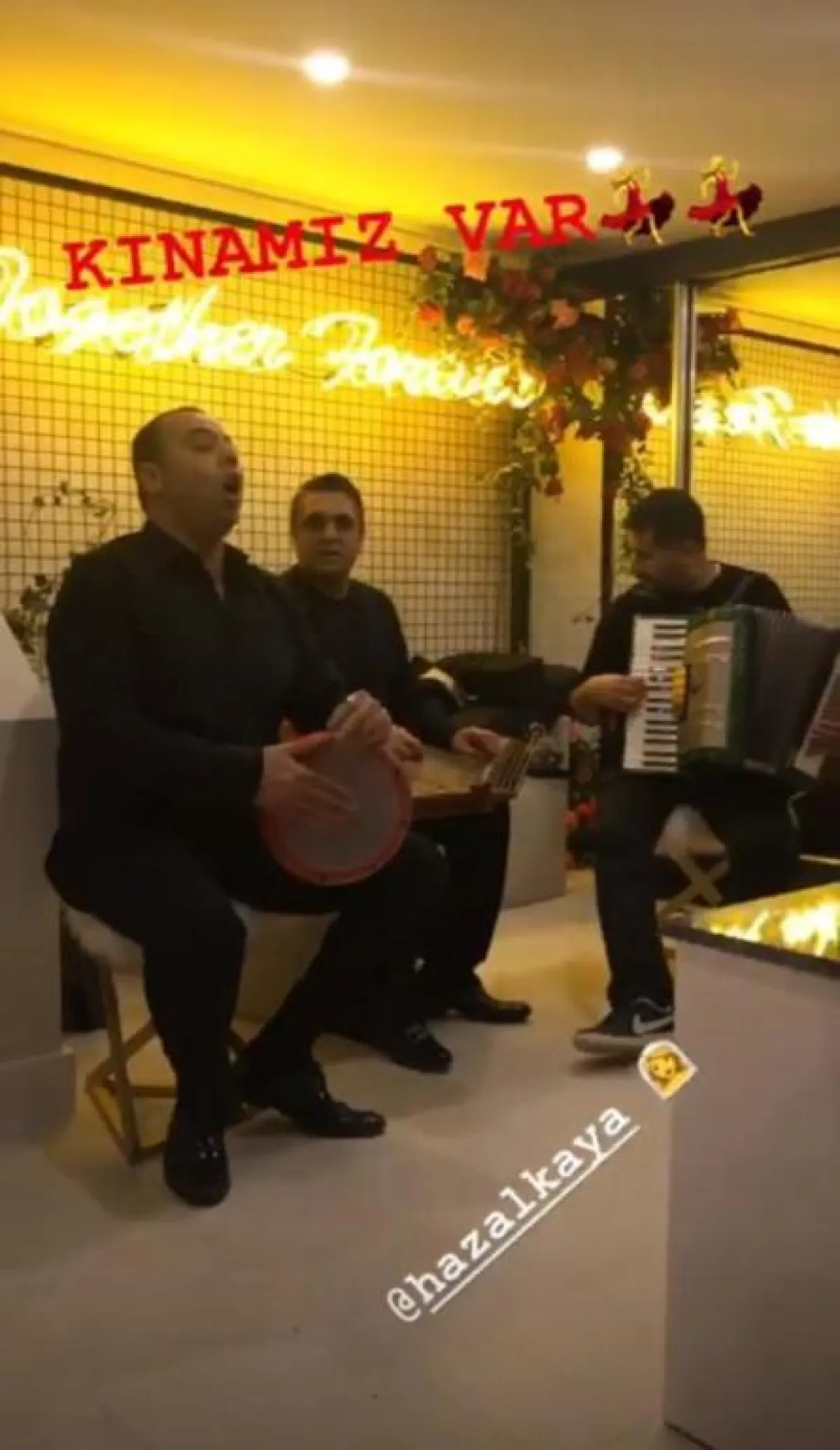 ومن أبرز ضيفاتها المدعوات لحفل الحنة صديقاتها المقربات الممثلات: سونجول أودين الشهيرة بنور، ونور فتاح أوغلو شريكتها ببطولة "العشق الممنوع" الشهيرة بالسلطانة ناهد دوران، ويلديز أتيكسوي بطلة "على مر الزمان"، وأخريات قمن بنشر صورهنّ مع هازال ووالدتها في حساباتهنّ الشخصية بمواقع التواصل الاجتماعي "انستقرام" و"تويتر".