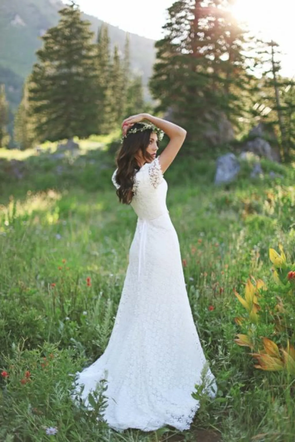 *عند اختيار فستان زفاف ناعم مصمم من خيوط الكروشيه، اتجهي إلى القصات البسيطة سواء كانت تحدد شكل جسمكِ أو بالستايل المنفوش.