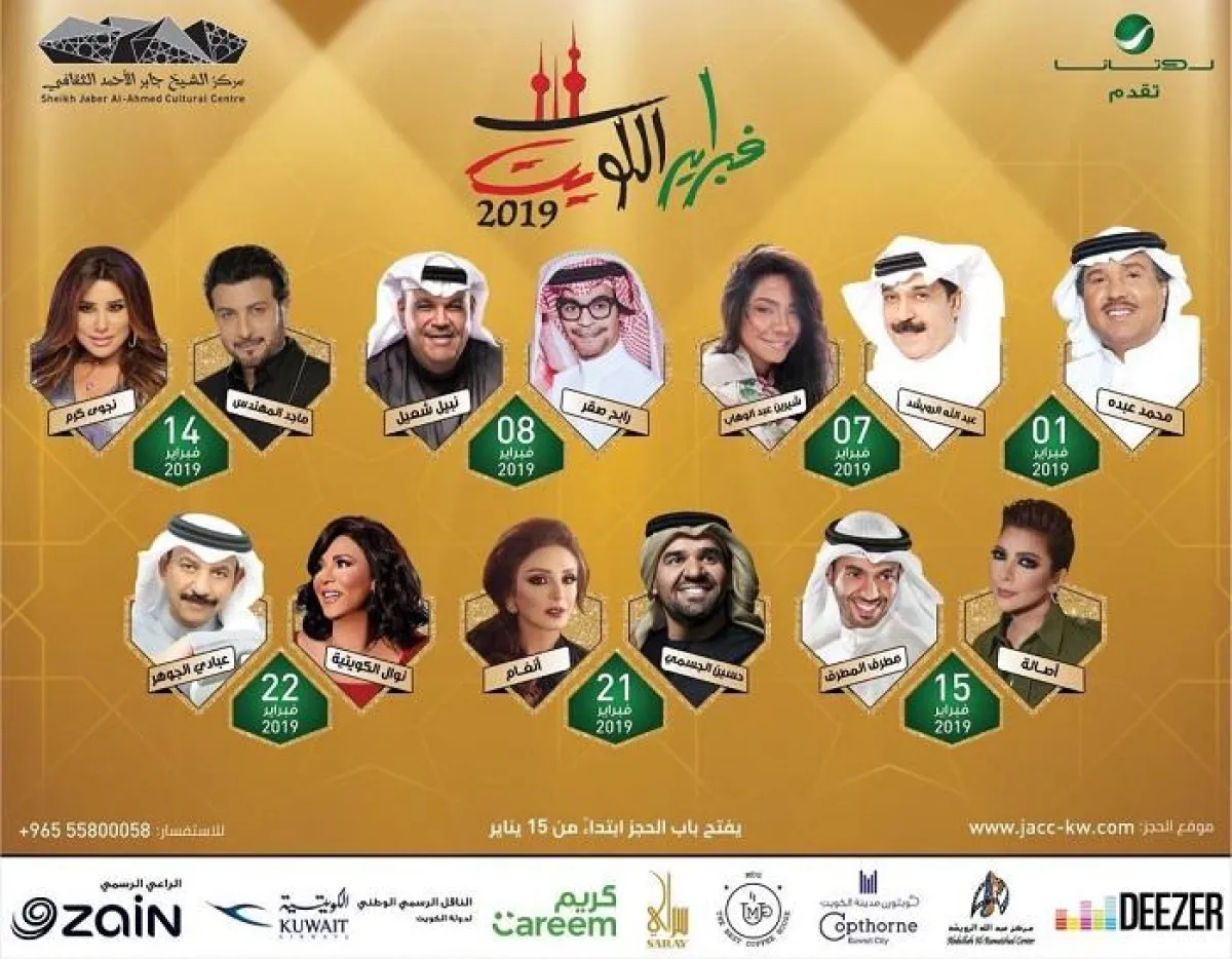 ويضم مهرجان "فبراير الكويت 2019" سبع حفلات، بزيادة حفلين عن مهرجان 2018، ويشارك فيه 13 نجمًا عربيًّا، هم محمد عبده، وعبد الله الرويشد ، ووائل كفوري، وعبادي الجوهر، وماجد المهندس، نبيل شعيل ، وحسين الجسمي، ومطرف المطرف، وأصالة، ونوال الكويتية، و نجوى كرم ، و أنغام، وشيرين عبد الوهاب .