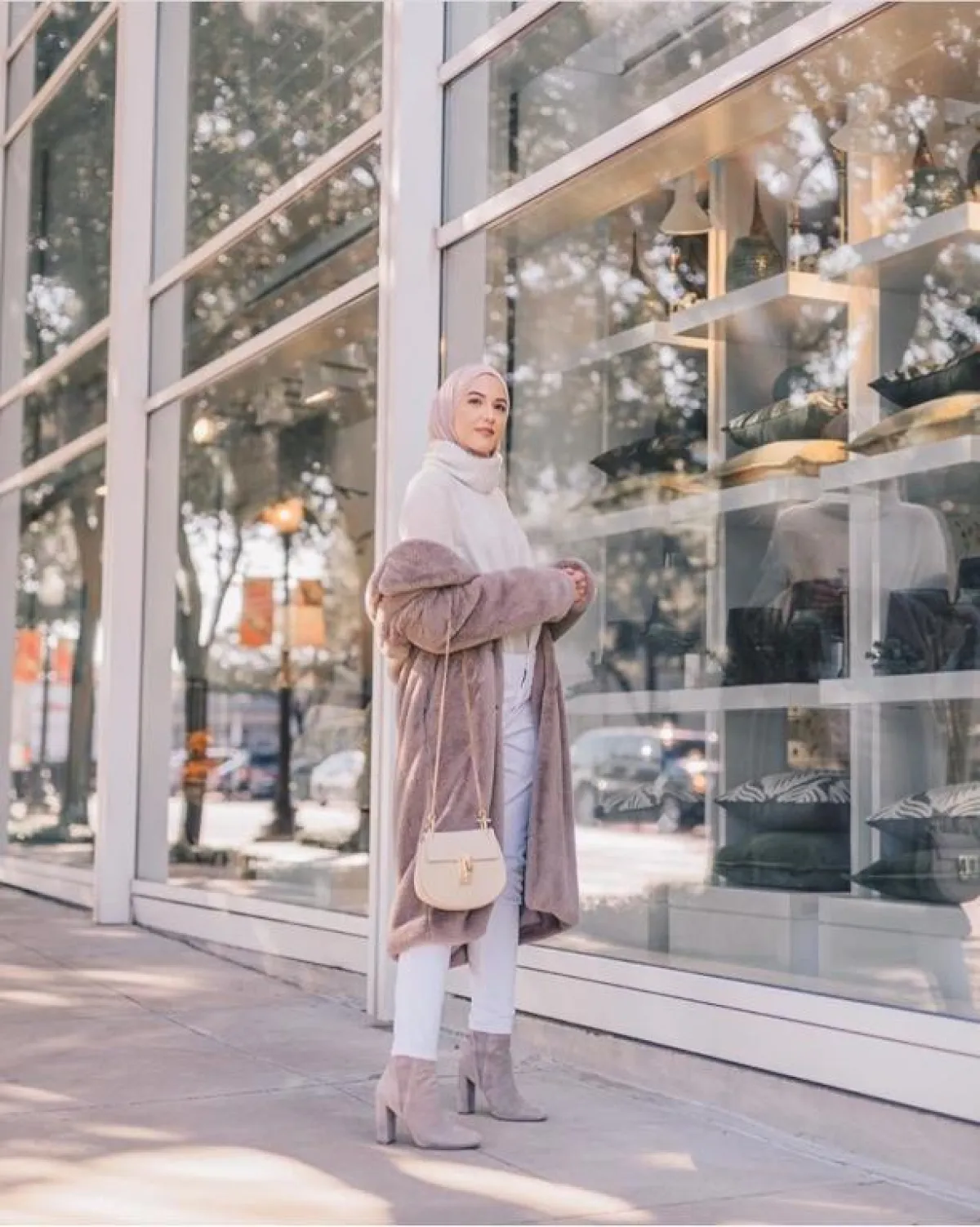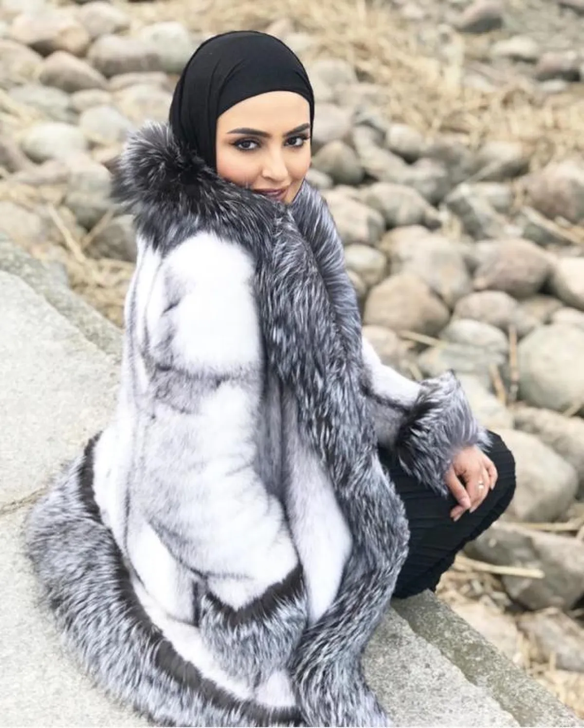 اعتمدت المدونة الخليجية جمال النجاة على أكثر من ستايل مختلف للمعطف الفرو، كالمعطف المخطط العنبي مع الأسود، والذي احتاج منها تنسيقًا بسيطًا وأكثر هدوءًا، بارتداء ألوان محايدة، حتى لا تبدو مبهرجة أو حتى بوزن زائد.