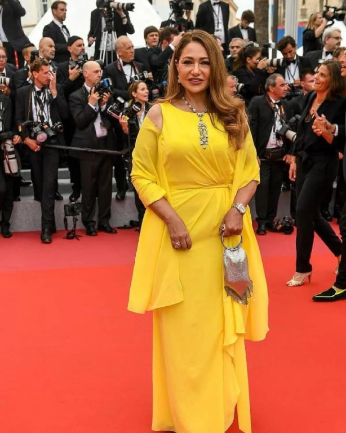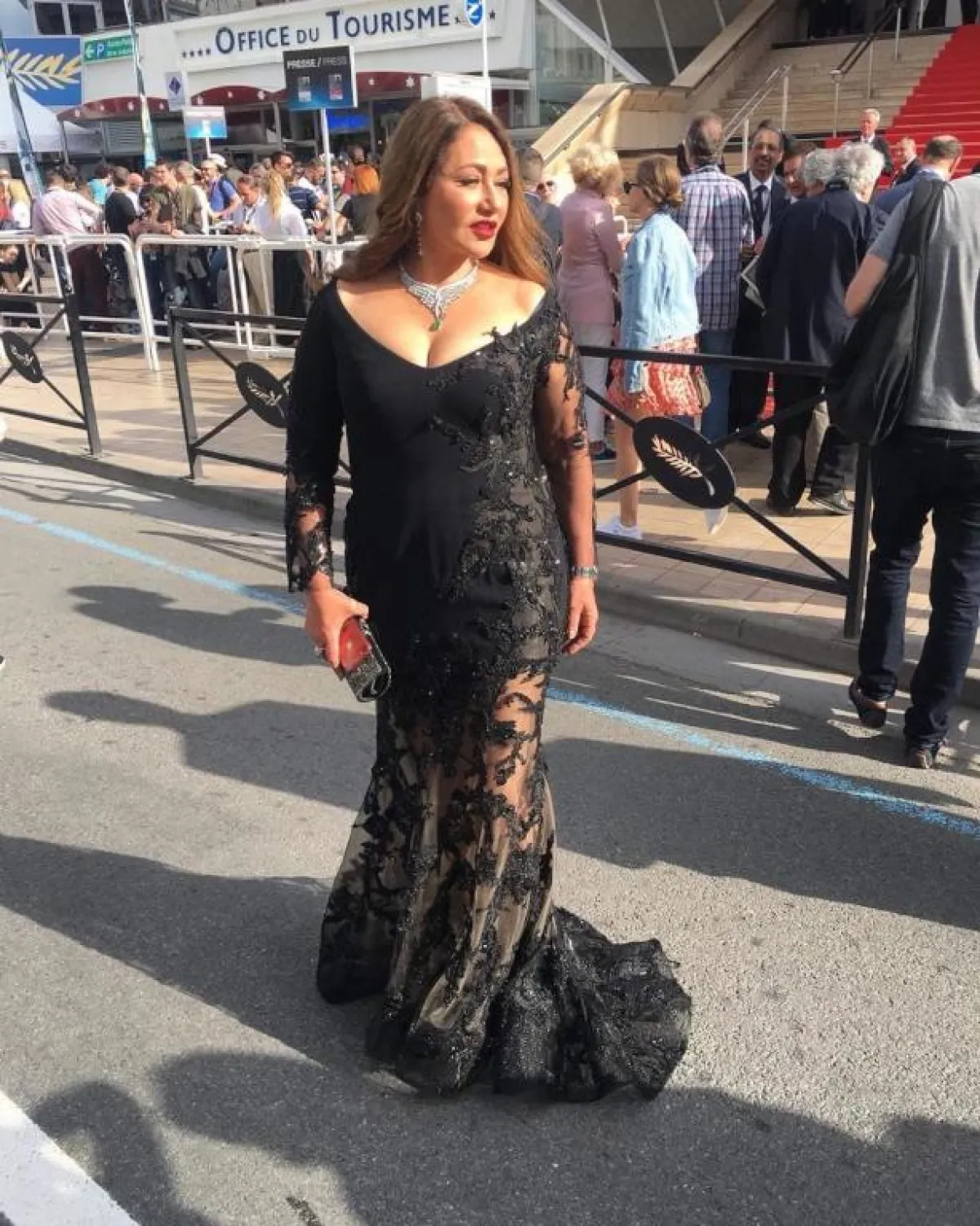 خلال وجودها في مهرجان كان السينمائي، اختارت ليلى علوي فستان سهرة أنيقًا باللون الأسود، قصته ناسبتها تمامًا، حيث إنه مكشوف عند الأكتاف، ومحدد الخصر ومن ثم ينسدل ضيّقًا على الجسم بقصة ذيل السمكة، وقد نسقت معه عقدًا وأقراطًا فاخرة من الماس.
