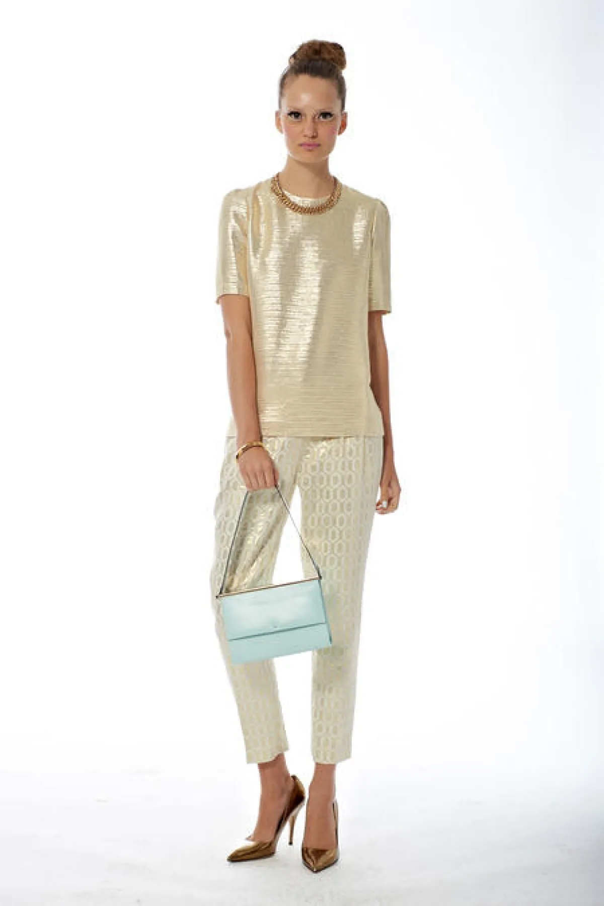 على الرُّغم من أجواء الستينات الطَّاغية على المجموعة، إلا أننا شاهدنا بعضًا من اللمسات العصريَّة الجريئة التي تميَّزت بها تصاميم "Kate Spade " فظهرت الألوان المعدنيّة, وطبعات المربعات والخطوط, والطَّبعات المورَّدة، وبعض العبارات الطريفة على الحقائب.