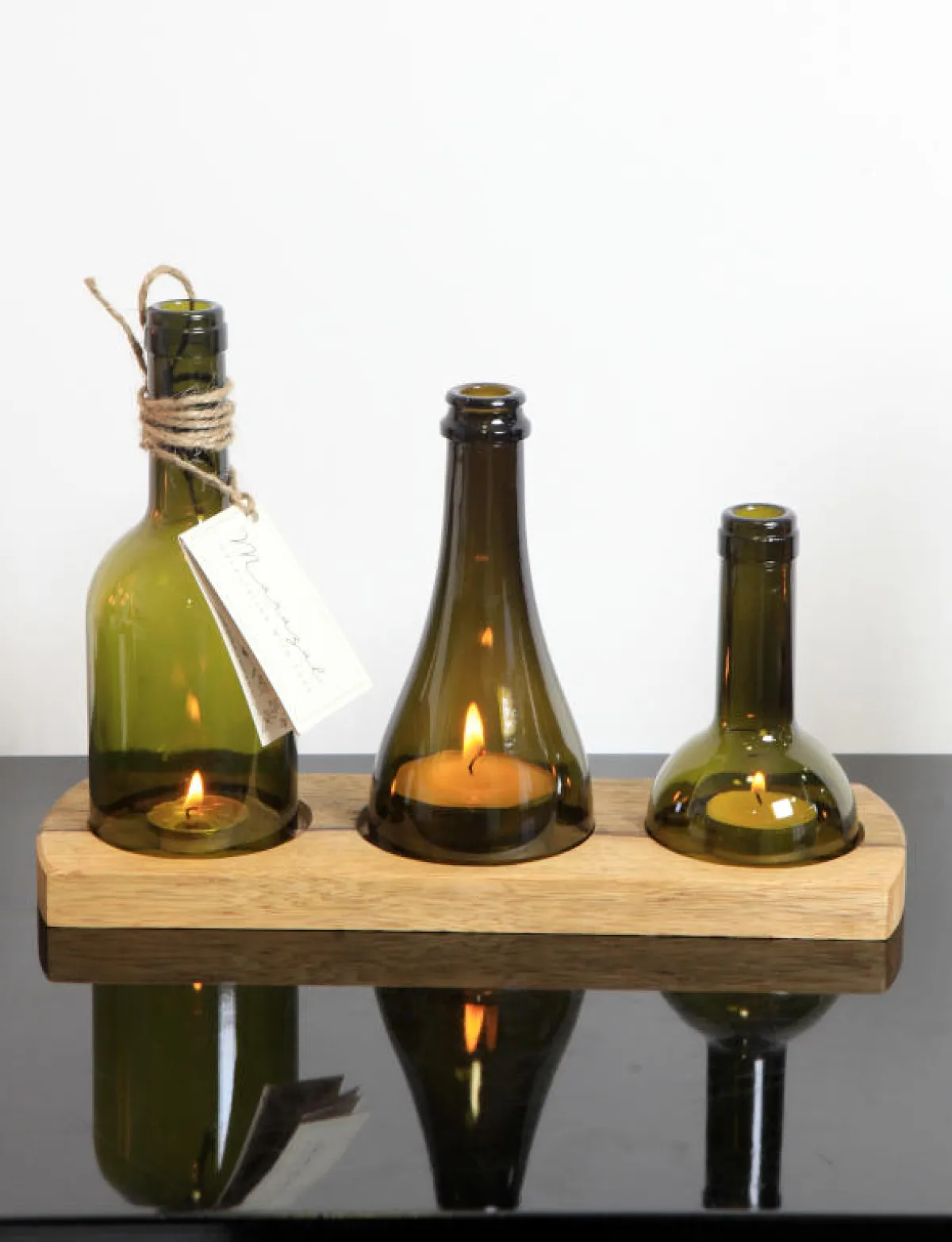 وعن كيفيَّة الحصول على العبوات الزجاج، تقول إنَّها تقصد عددًا من المطاعم لهذه الغاية، كما أنَّ بعض الأصدقاء يساعدها في جمعها. وهي تهتمُّ أيضًا بجمع بواقي الخشب لدى نجّار تعرفه من أجل تطعيم الزجاج بهذه الخامة النبيلة.