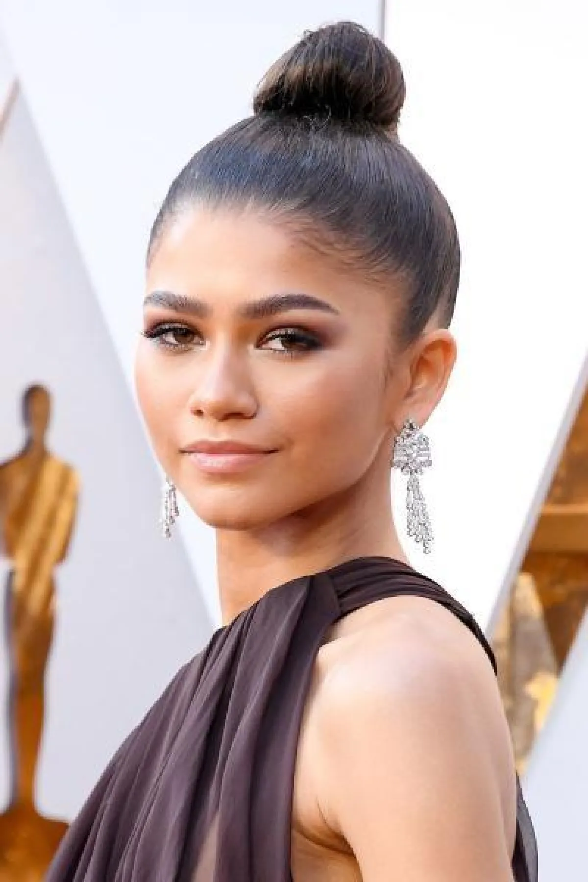 كانت إطلالة النجمة زيندايا خلال حفل أوسكار 2018 إحدى أجمل الإطلالات وأكثرها رقياً بعيداً عن المبالغة. حيث اعتمدت مكياج سموكي باللون البرونزي، الذي عزز من جمال عيونها العسلية وبشرتها الحنطية، واختارت في المقابل الشفاه الطبيعية. كما اعتمدت تسريحة الكعكة المرتفعة التي ساهمت في تسليط الضوء على جمال ملامحها.
