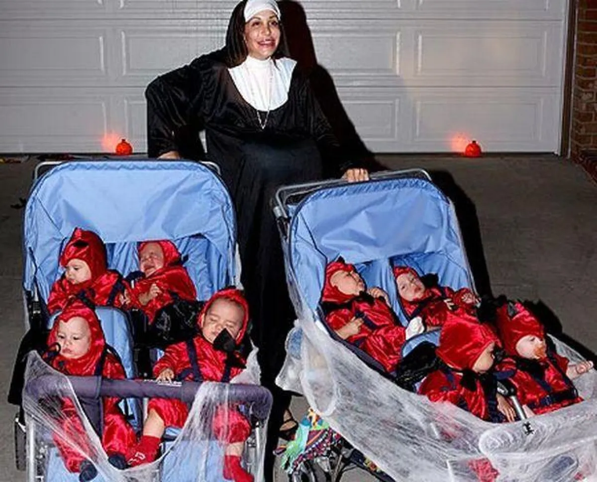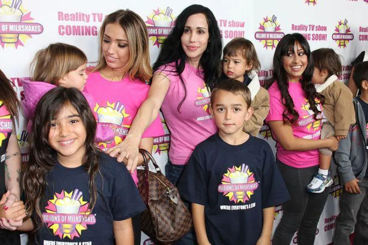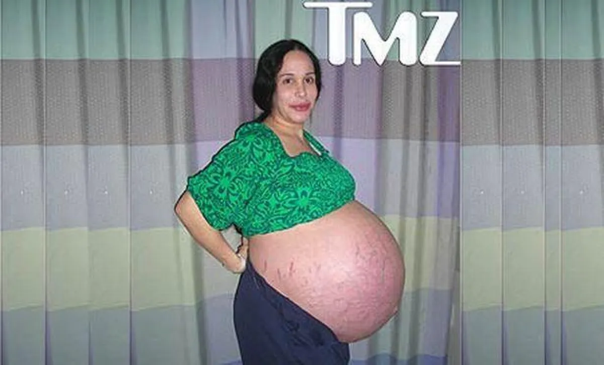 وقد اتُهمت بالفعل، وهى أم لستة أطفال آخرين، بتعمد محاولة خلق حمل مفرط للحصول على المال بعد أن قامت طبيبة بزرع 12 جنينًا في رحمها، مع أنها عاطلة عن العمل وتعيش مع أمها، مما جعل الرأي العام ينتقدها وسماها أسوأ أنواع الأمهات، ولكن عندما نفدت الأموال، وتم طرد نادية وأطفالها الأربعة عشر من منزلهم في لوس أنجلس، لجأت إلى إجراءات أكثر قسوة من أي وقت مضى لكسب المال، وشملت هذه المحاولات قيامها بالمشاركة في مباريات لملاكمة المشاهير وغيرها من الأعمال الصعبة والهينة في نفس الوقت.