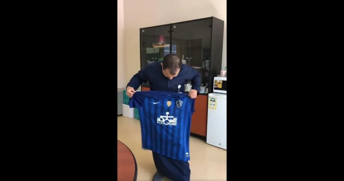 تم إهداءه قميص النادي موقَّعاً عليه من جميع لاعبي الفريق