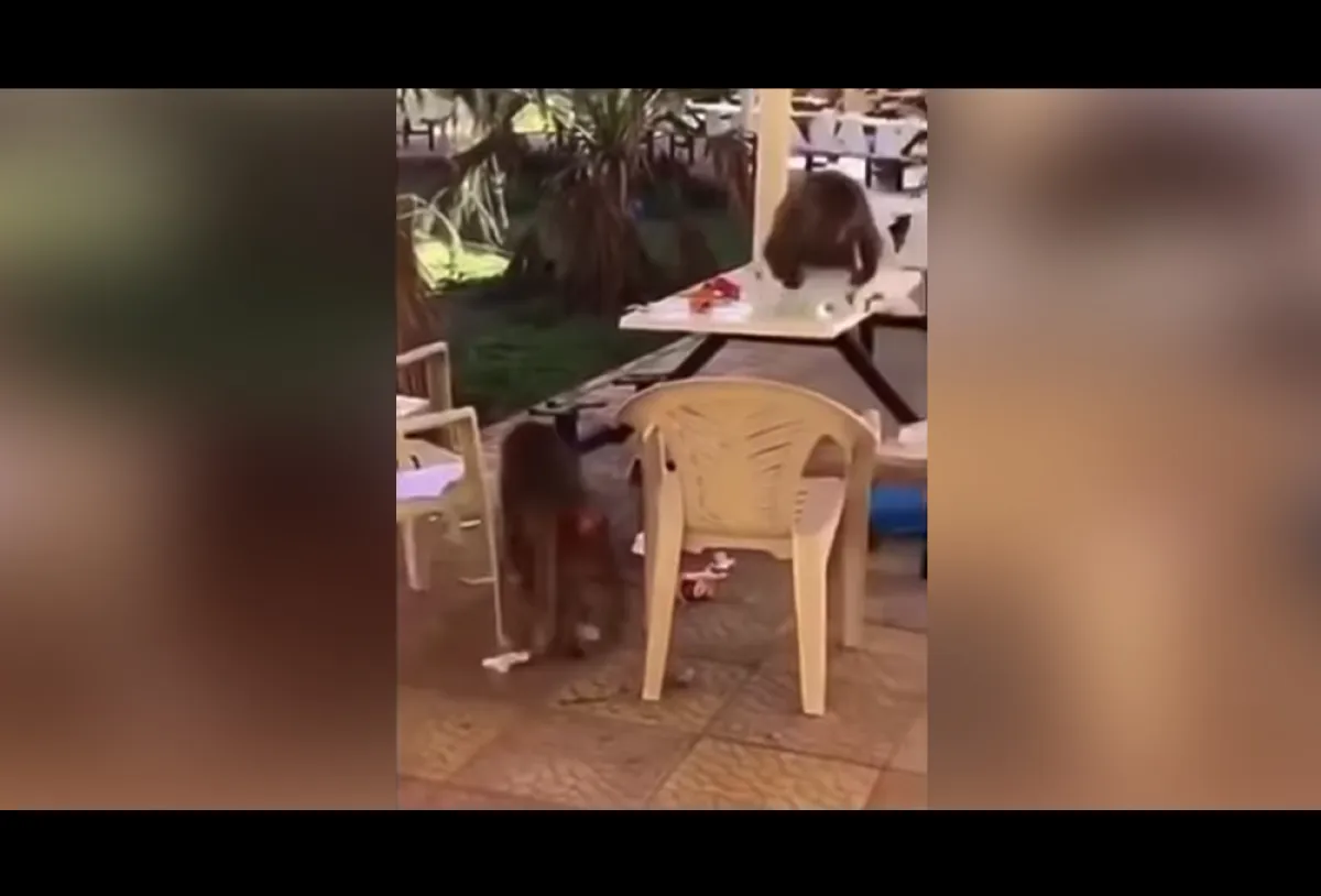 القرود تحتل طاولات الطعام