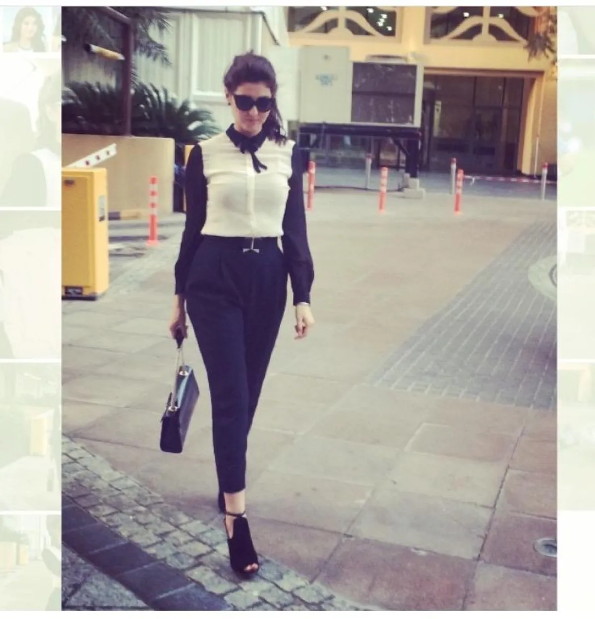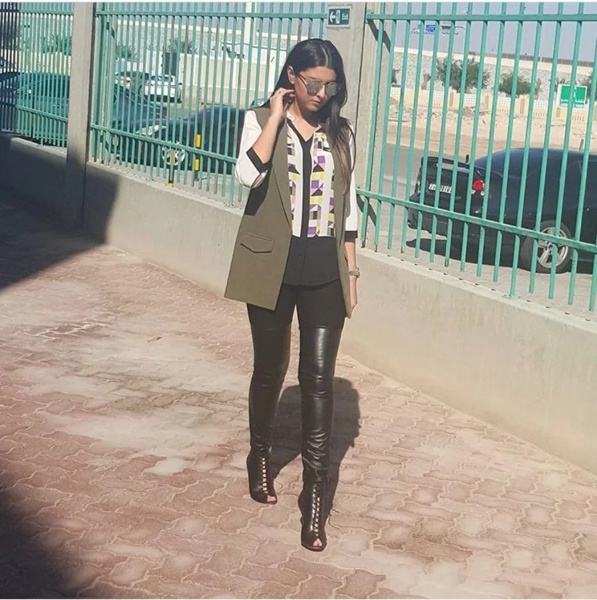 القميص الكلاسيكي قطعة لا تستغني عنها الإعلاميات بشكل عام، وأنتِ كذلك بحاجة إليها في العمل، لهذا اخترنا لكِ هذا اللوك من مريم، بالبليزر من دون أكمام باللون الزيتوني، مع قميص أبيض، وبنطلون أسود، ويمكنكِ استبدال بوت الساق الطويل ببوت الكاحل القصير، لاطلالة أكثر احتشامًا.