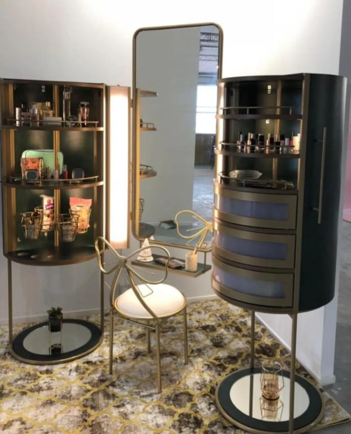 • ألفت باريان: تعمل مصمِّمة الديكور ألفت على إعادة ابتكار وتصوُّر قطع قديمة، مستخدمة "تكنيكات" حديثة، وهو ما أبرزته من خلال مشاركتها في المعرض عبر تسريحة أعادت هيكلتها.