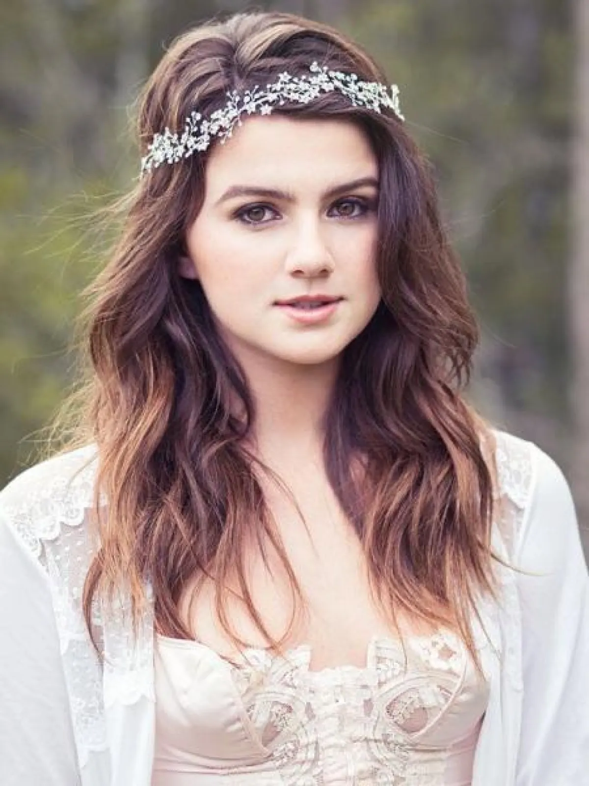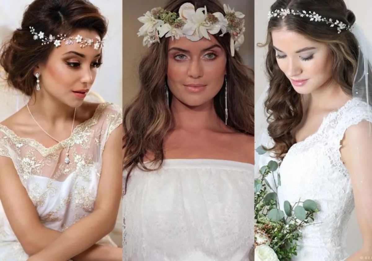 لعرس خلال النهار، اختاري التاج الذي يلتفّ حول الجبين، مع تسريحة شعر بتموّجات ناعمة، فهو تصميم عصريّ يناسب الاحتفال تحت ضوء الشمس ويمنحكِ إطلالة بوهيميّة جذّابة، أو يمكنكِ اعتماد تاج الورود الملونة.