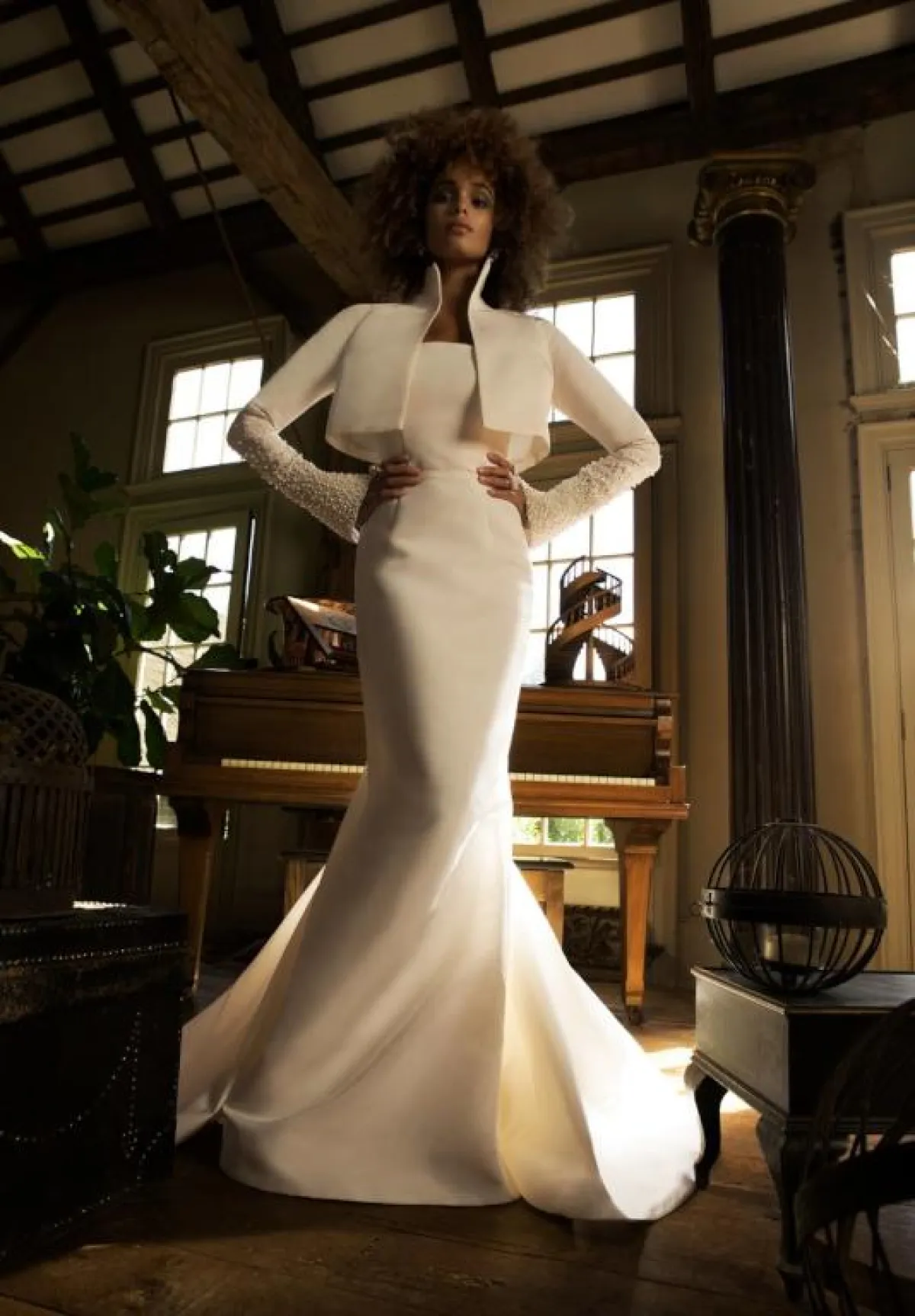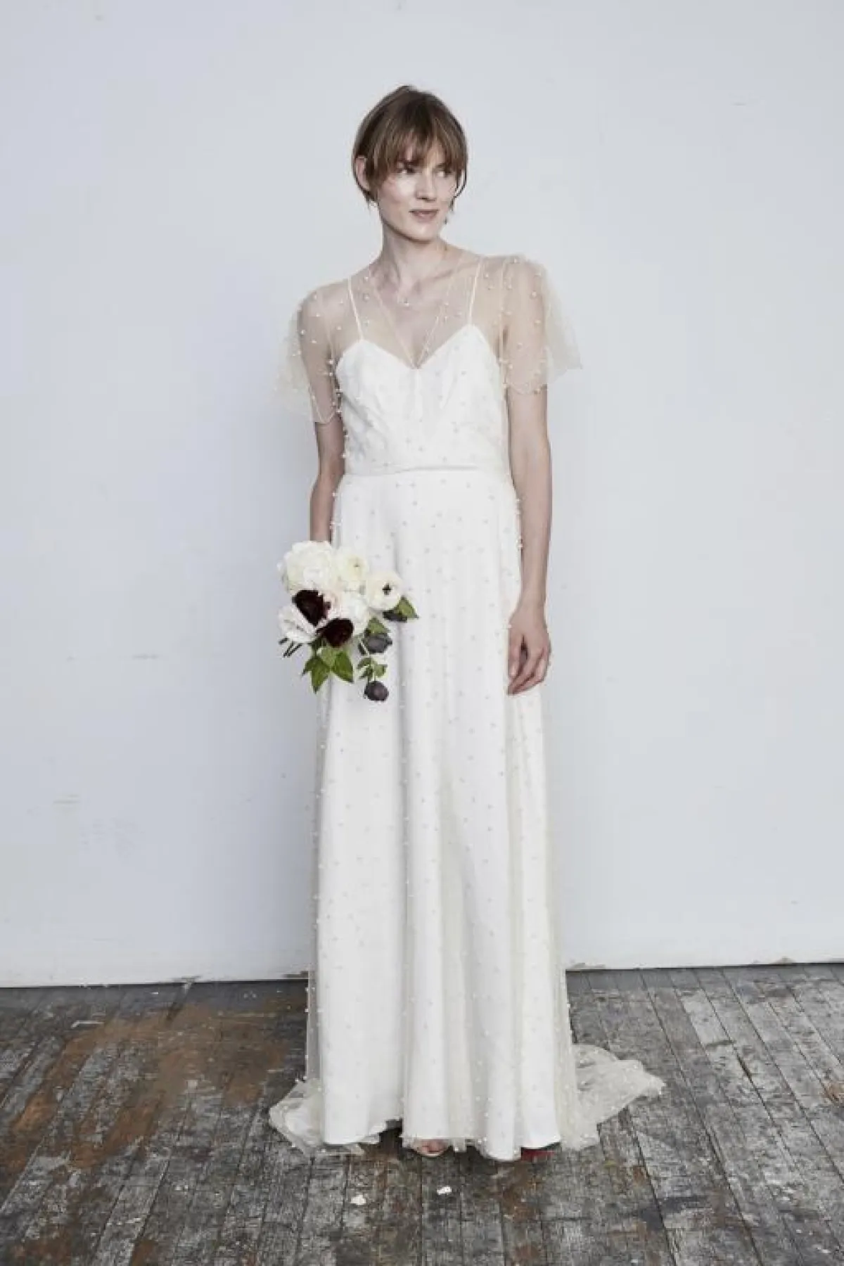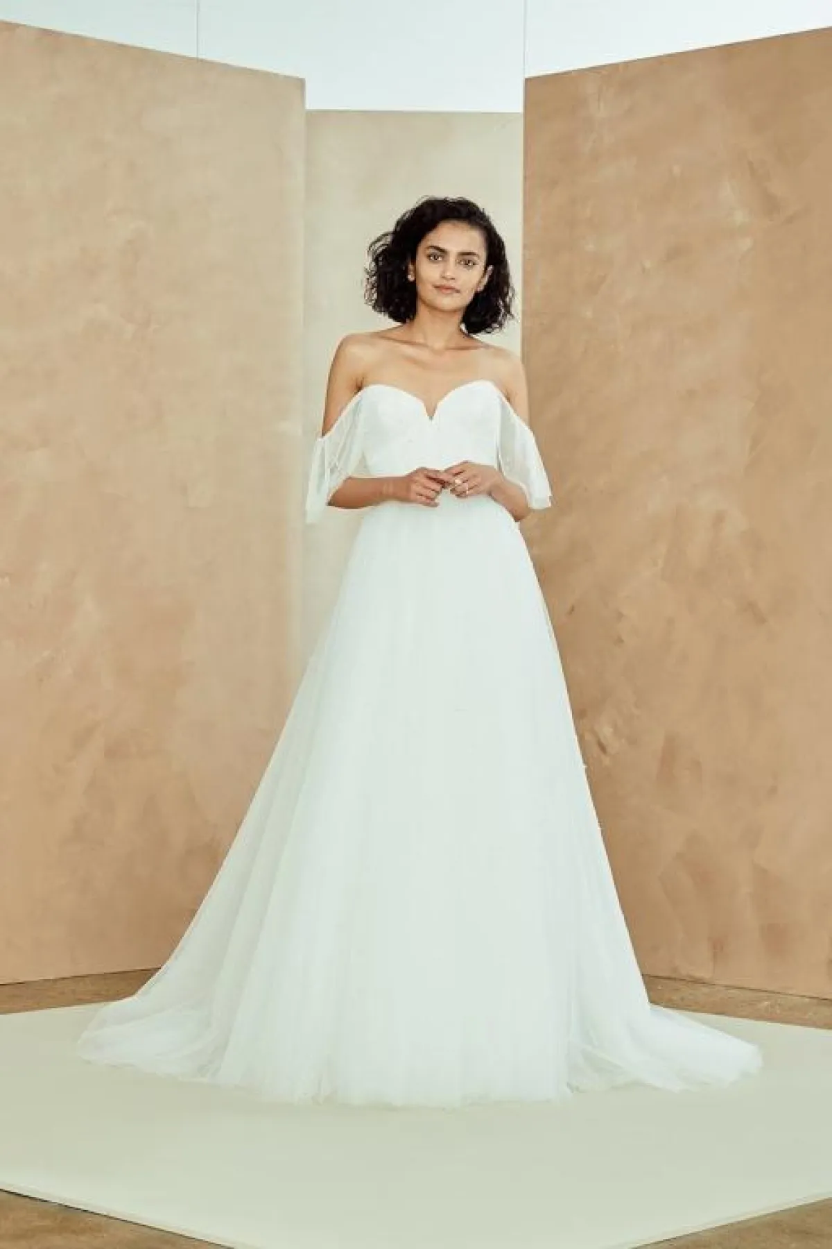 الفساتين من أكثر من طبقة أو قطعة لاحظناها كذلك على منصة عروض الأزياء للعروس، يمكنكِ تطبيقها بطريقة فخمة باعتماد بوليورو أو كاب التوب المطرز بالكامل، والفستان يأتي بتصميم منسدل وهادئ من دون الكثير من القصَات حتى لا تبدي مبهرجة، كهذا الفستان مثلًا من Isabelle Armstrong إيزابيل أرمسترونغ.