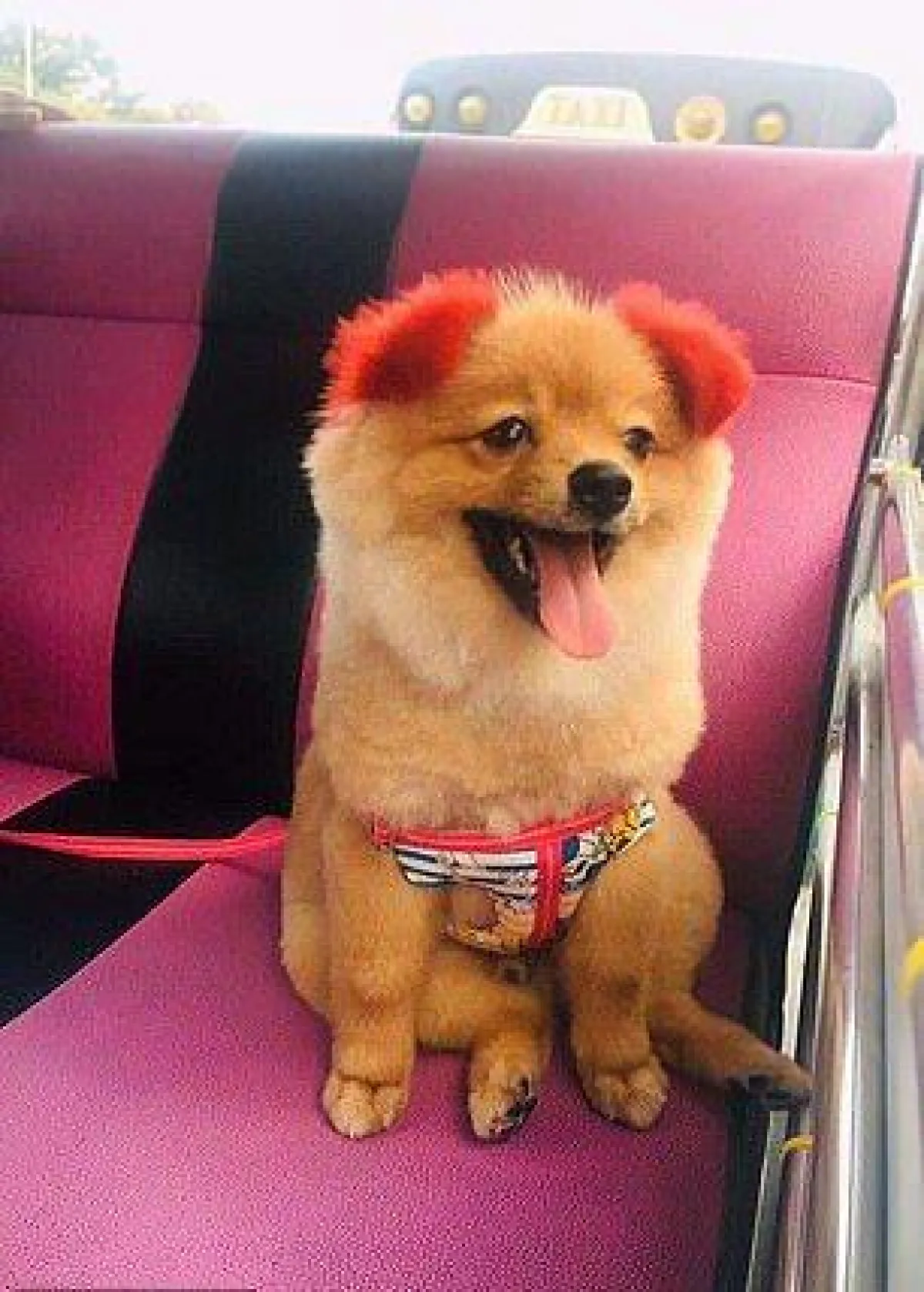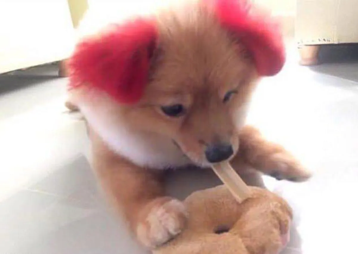 وحرصت صاحبة الكلب البوميراني الأشقر الذي يدعى "ديفي Diffy"، على تزيين أذنيه وذيله باللون الأحمر، ولكن بعد 40 دقيقة من عملية الصبغ ووضعها في ورق الألومنيوم، ظهرتا بمظهر متوهج وغير طبيعي، وهو ما أثار شكوك صاحبته.