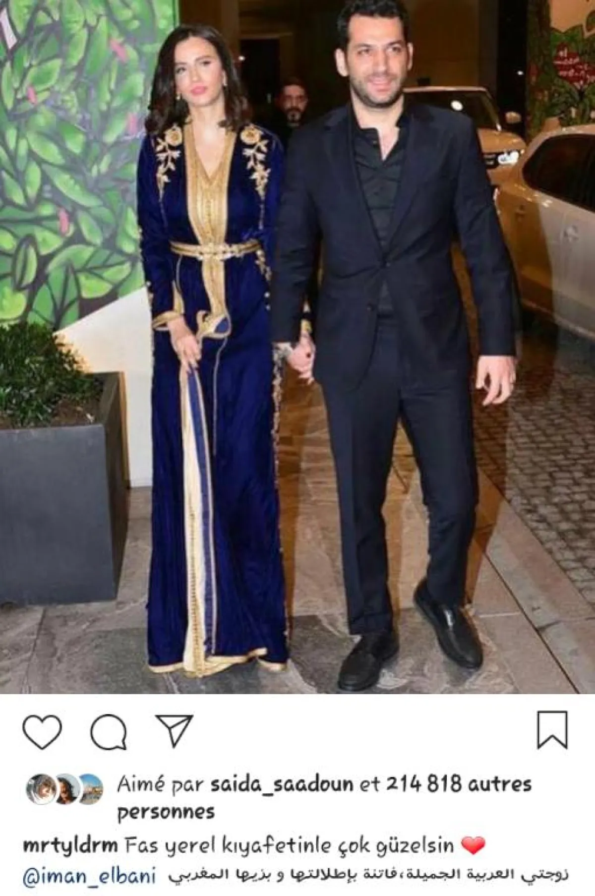 وشارك مراد عبر حسابه على تطبيق الصور والفيديوهات"الأنستقرام"، صورته رفقة زوجته بالفقطان المغربي وعلق عليها قائلا: "زوجتي العربية الجميلة، فانتة بإطلالتها وبزيها المغربي".