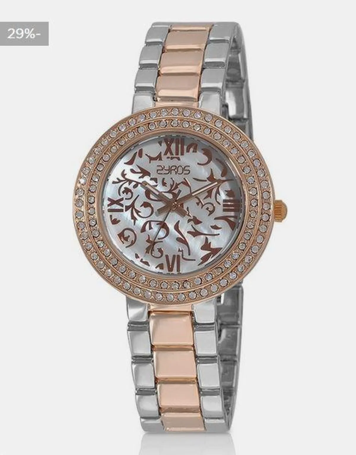 ساعة انالوج من الستانلس ستيل متعددة الألوان بإطار منقوش باللون الذهبي