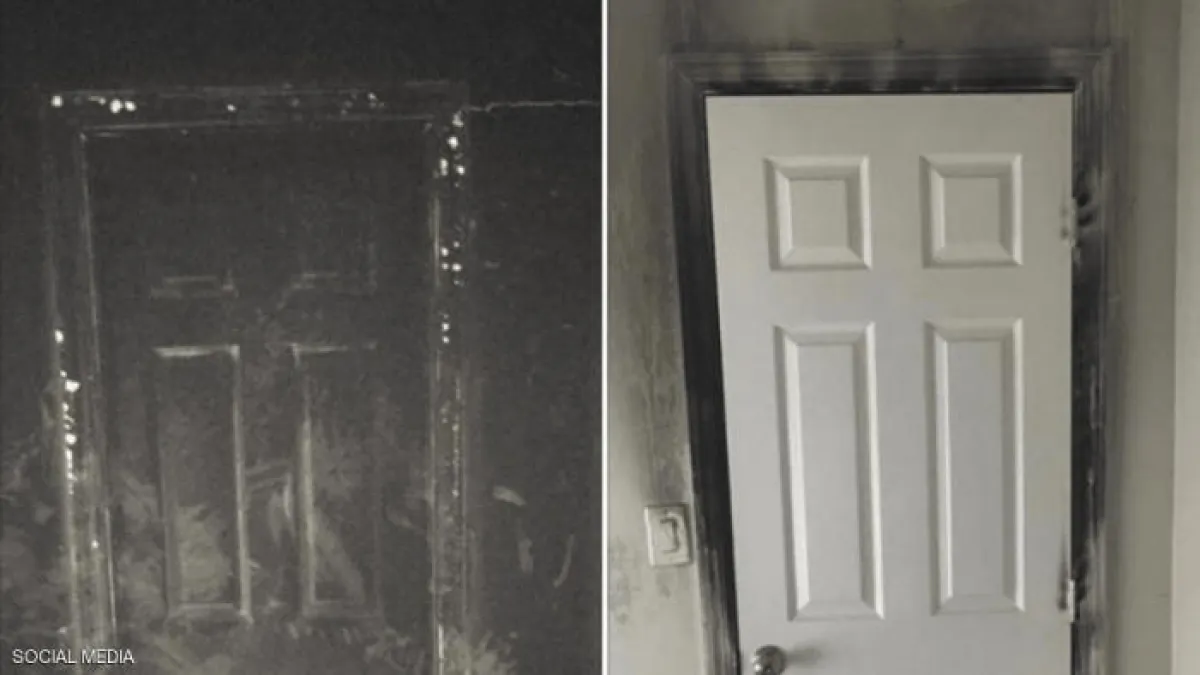 وبعد انتهاء عملية إخماد الحريق، بدا وكأن الباب لعب دور حائط صد في وجه النار، متضررًا من الخارج بشكل لافت بينما كانت الغرفة محمية من الحريق.
