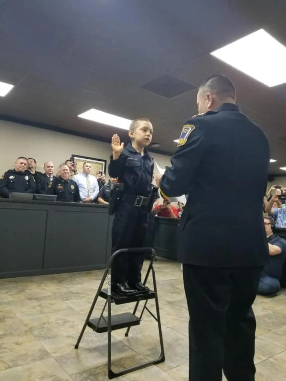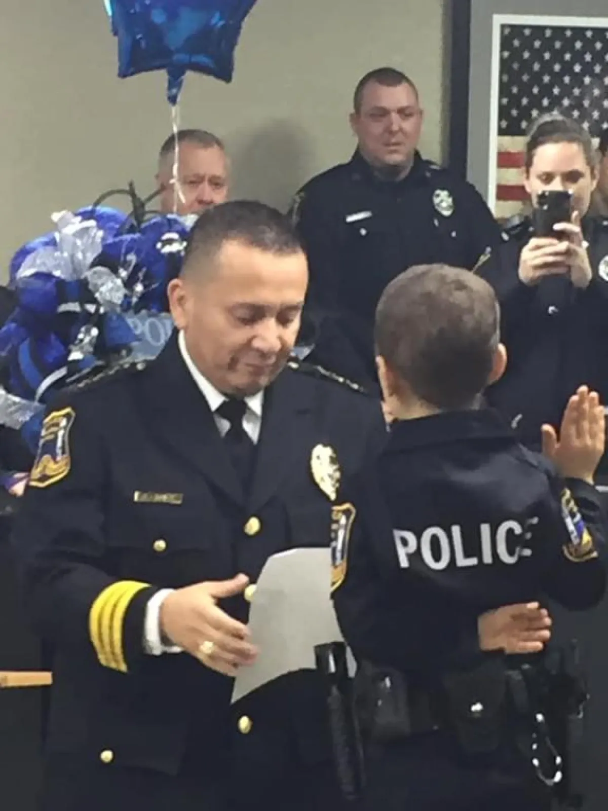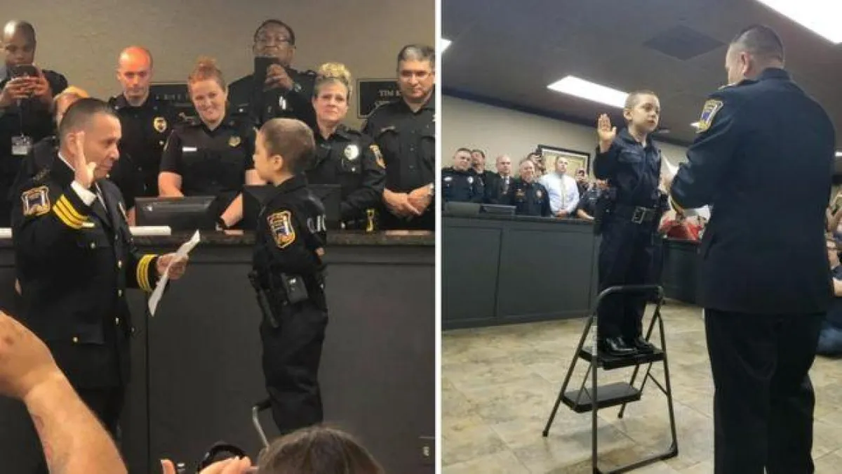 وبحسب ما نشره موقع «سكاي نيوز»، فقد نشرت شرطة مدينة «فريبورت» الأمريكية، مقطع فيديو مصوراً على حسابها الرسمي عبر موقع «تويتر»، يظهر الطفلة «أبيغيل أرياس»، المصابة بسرطان الرئة، وهي تؤدي اليمين القانونية للالتحاق بالقوات الأمنية؛ حيث كانت «أرياس» مرتدية البدلة الرسمية الخاصة بالشرطة، لتتحقق بذلك أمنيتها بأن تصبح ضابطة أمن.