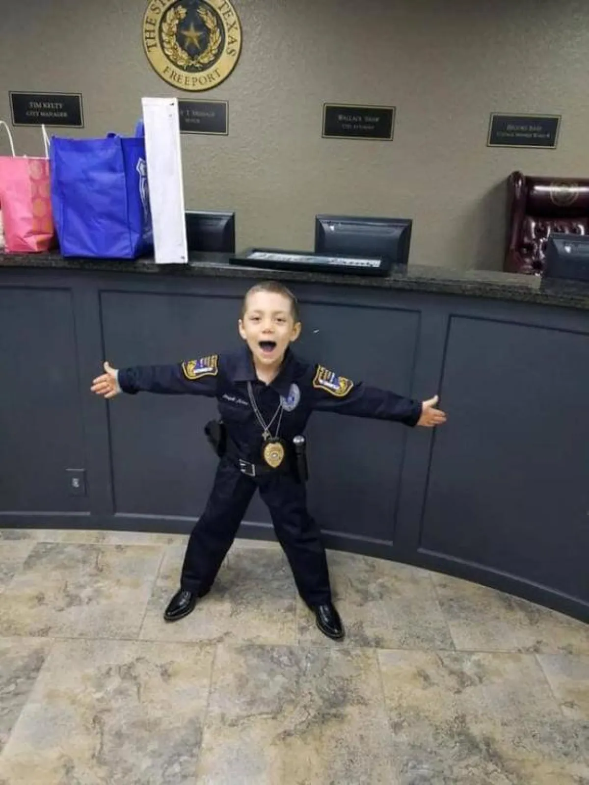مشاهد إنسانية قد تكون صغيرة للغاية، لكنها قد تعني لدى البعض الكثير، قد تعني أن هناك حياة جميلة من الممكن عيشها في خِضم الأزمات الكبيرة، ومن هذه المشاهد التي لاقت إشادات وتفاعلاً كبيراً، ما قامت به شرطة مدينة «فريبورت» في ولاية تكساس بالولايات المتحدة الأمريكية مؤخراً، عندما عملت على تحقيق أمنية طفلة صغيرة تبلغ من العمر 6 سنوات، تعاني من مرض سرطان الرئة، في محاولة منها للتخفيف من ألمها وبث روح الأمل فيها.