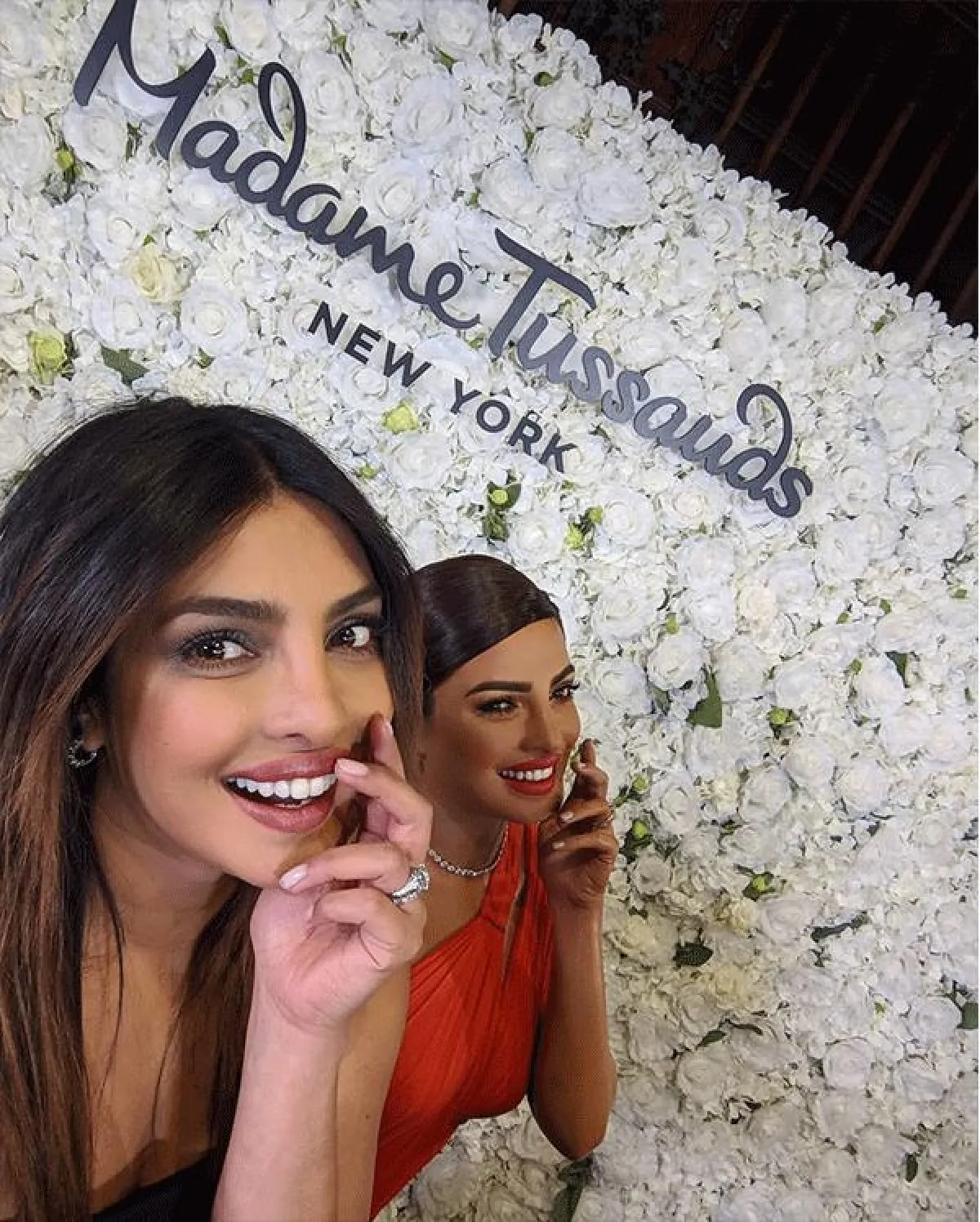 وشاركت بريانكا التي ما زالت تحتفل بزواجها من النجم نيك جوناس Nick Jonas، شاركت متابعيها بصور على حسابها الخاص في انستقرام، حيث نشرت صورتين وهي تقف ألى جانب تمثالها الشمعي الذين يبدو توأمها.