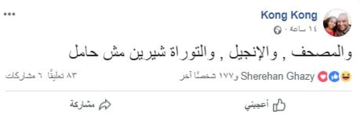 محمد عبد الوهاب شقيق المطربة شيرين عبد الوهاب، اختار التعليق على شائعة الحمل عبر حسابه بموقع الفيس بوك قائلًا: والمصحف، والإنجيل، والتوراة شيرين مش حامل.