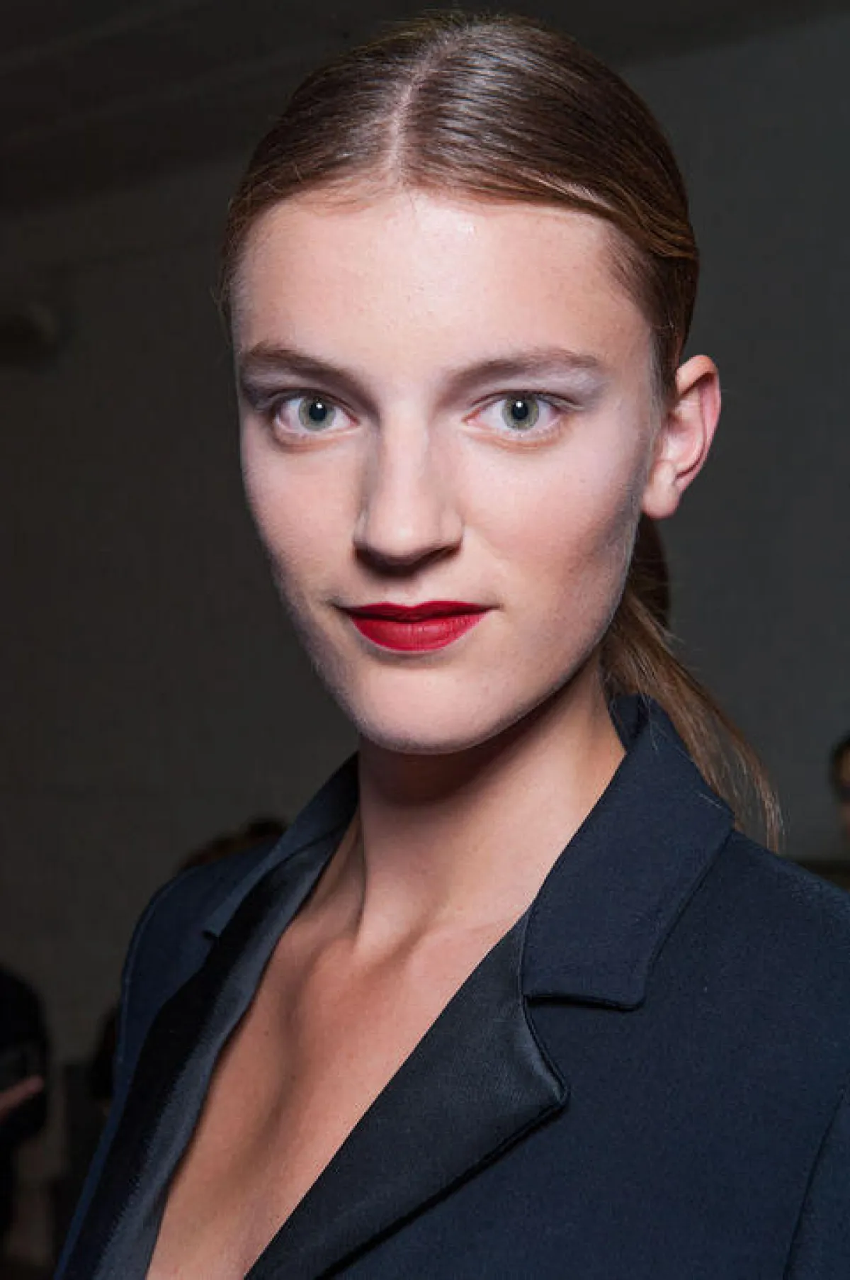 بالنسبة للبشرة: أخذت البشرة اللون الفاتح والمشرق لبداية فصل الربيع، بمعنى اتركي بشرتك على لونها الأساسي أو ضعي كريم أساس من نفس الدرجة.