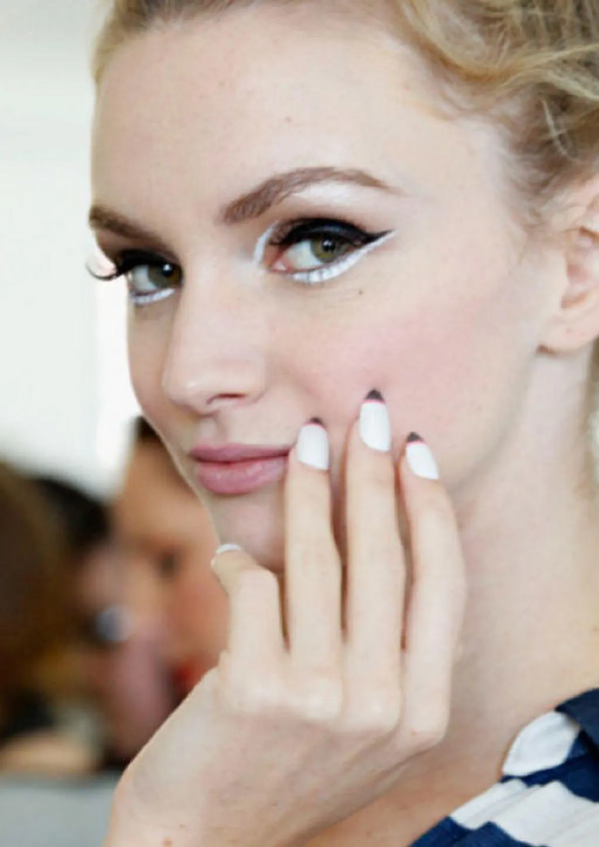 العيون: لا يمكن أن تمر موضة لفصل ما من دون الكحل في العينين أو الآي لاينر أو حتى السموكي آيز أو المكياج الدخاني وعيون القطة، مع إضافة بسيطة هذا الموسم للآي لاينر الأبيض.
