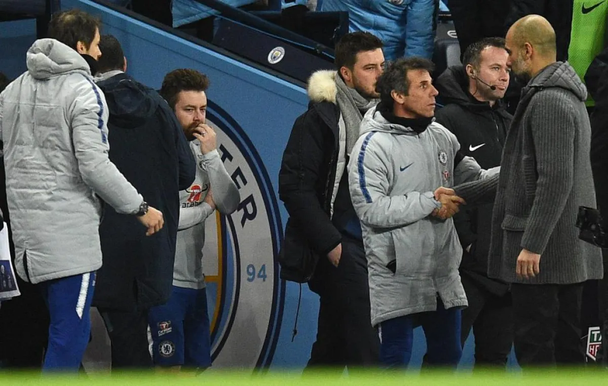 على جانب آخر من هذا اللقاء المثير في جميع تفاصيله وأحداثه، فقد انطلقت انتقادات شديدة وواسعة بحق مدرب نادي تشيلسي، الإيطالي «ماوريسيو ساري»، وذلك كونه رفض مصافحة مدرب الـ«مان سيتي»، الإسباني «بيب غوارديولا»، وشرع بالدخول إلى نفق اللاعبين وهو في غاية العصبية، دون الالتفات إلى مدرب الفريق المستضيف، الذي بادر لمصافحته، ما جعل مساعد «ساري»، الإيطالي «جانفرانكو زولا» يتدارك الموضوع والقيام على الفور بمصافحة «غوارديولا».