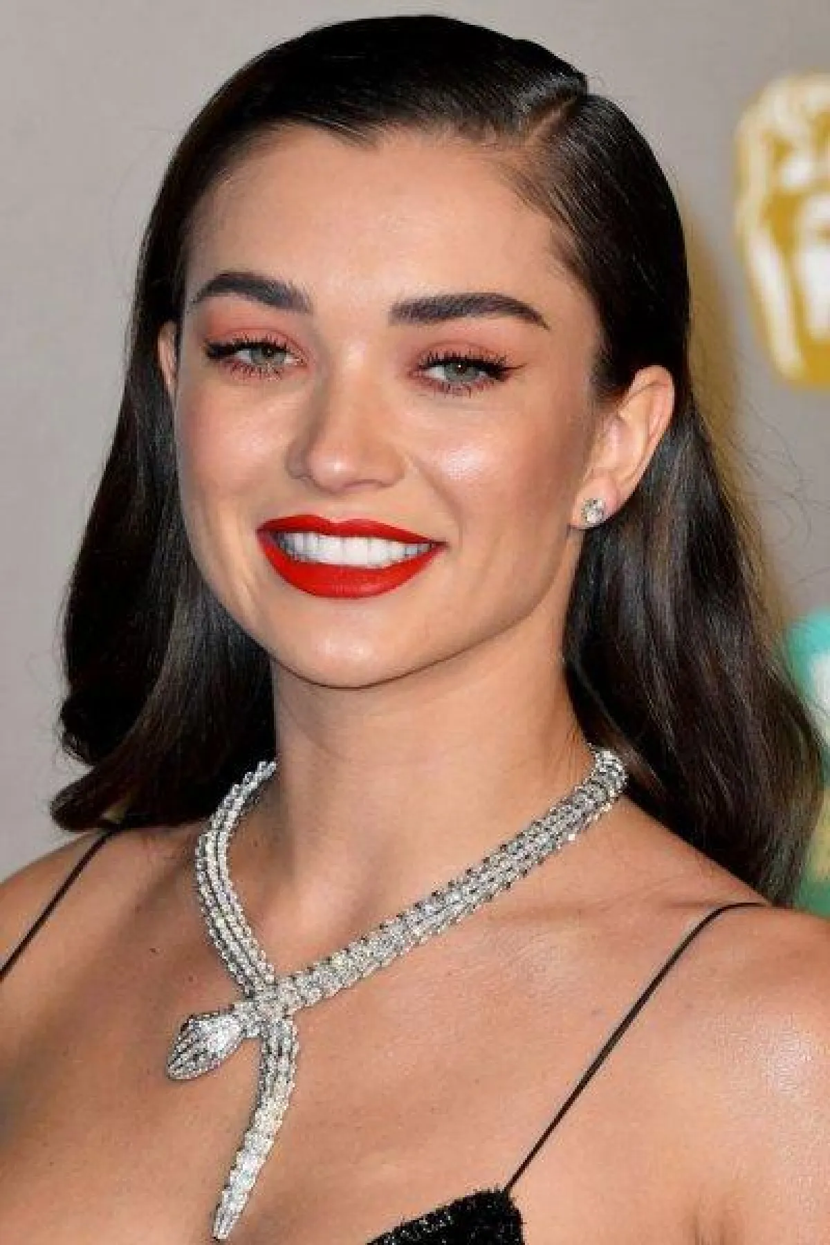 النجمة آمي جاكسون Amy Jackson، اعتمدت مكياجاً ساحراً يضج بالجمال والأنوثة، والذي ارتكز على أحمر الشفاه باللون الأحمر القوي، إلا أنها اختارت في المقابل مكياج العيون الهادئ مع خط أيلاينر رفيع ورموش كثيفة وطويلة. كذلك، اعتمدت آمي تسريحة الشعر المنسدل مع التموجات الناعمة والغرة الجانبية النائمة.