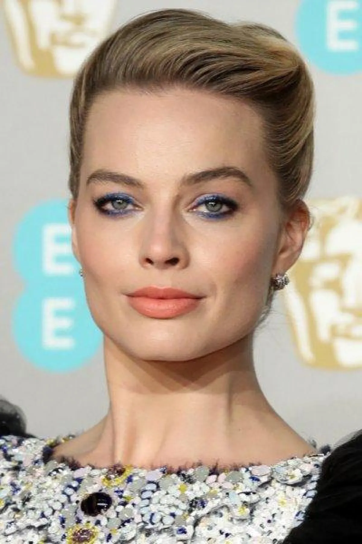 النجمة مارغوت روبي Margot Robbie اختارت مكياج العيون الملون المرتكز على الظلال الزرقاء فوق الرموش العليا وتحت العين، والكحل الأسود عند زاوية العين، إضافة الى أحمر الشفاه الخوخي الجذاب. واعتمدت أيضاً تسريحة الشينيون مع الغرة المنفوخة قليلاً نحو الأعلى، مما أضفى على إطلالتها لمسة مميزة.