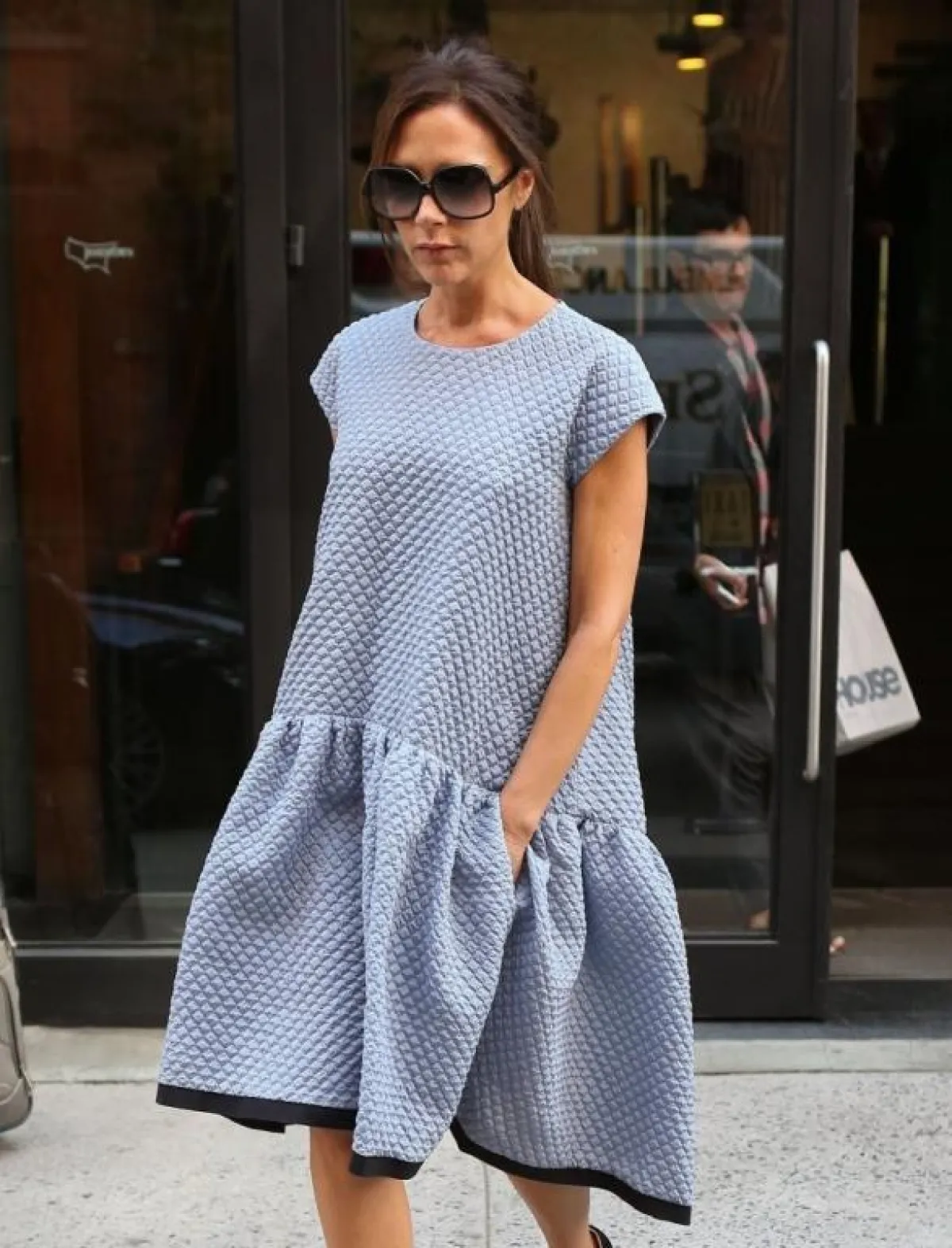 حيث شوهدت Victoria Beckham البارحة متألِّقة بفستان سماويّ بتصميم واسع من مجموعة "Victoria by Victoria Beckham " لربيع وصيف 2014 في نفس اليوم الذي عرض فيه في أسبوع الموضة في نيويورك.