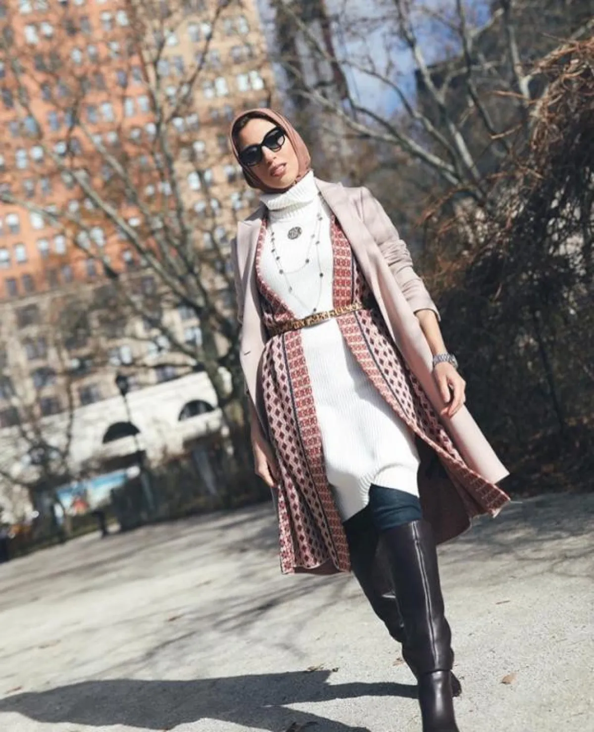 البوت بالساق العالي يمكنكِ توظيفه بأكثر من طريقة، كالتي تعتمدها ميلانيا مع المعاطف الطويلة مثلًا، والجينز، أو مع الكنزة الصوف الطويلة التي ترتديها كفستان مع حزام الخصر، وتزين اللوك بالبوت لاطلالة مختلفة، تجمع بين الكاجوال والكلاسيكية.