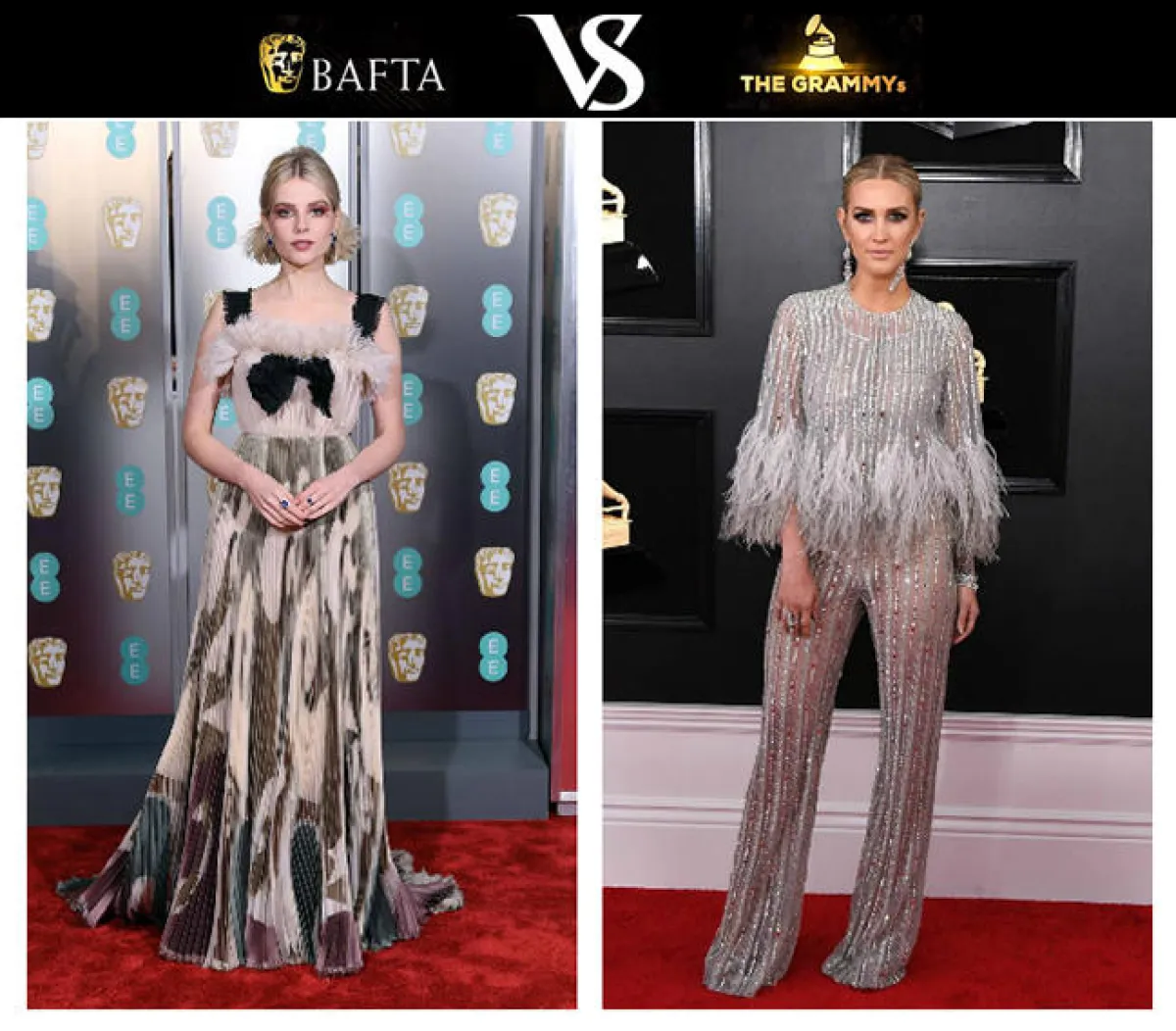وقد قمنا اليوم بمقارنة صغيرة بين نجمات البافتا BAFTA وبين نجمات الـ Grammys، ساعدينا لاختيار الأكثر أناقة برأيِك.