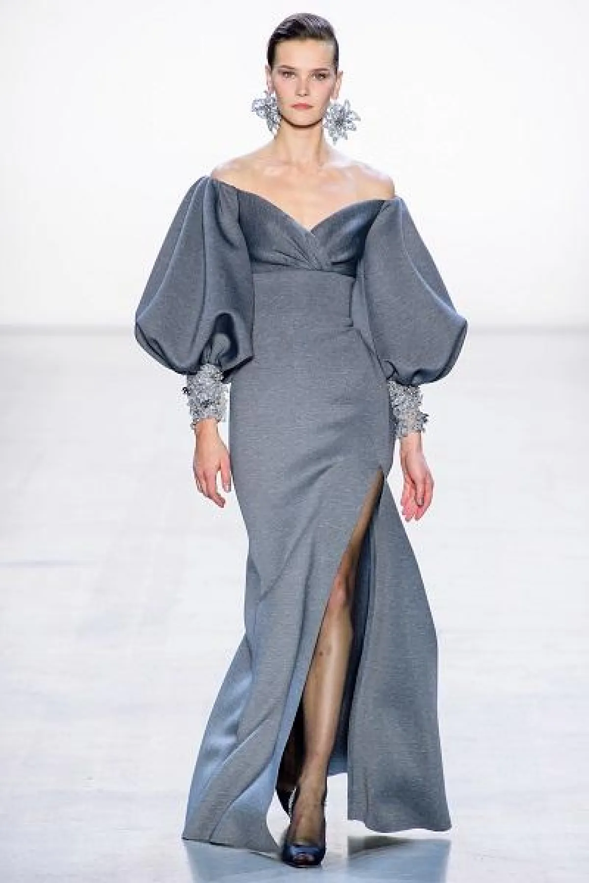 ولإطلالة ناعمة وكلاسيكية لمناسباتك الليلية في هذا الموسم، اخترنا لكِ من منصات أسبوع نيويورك للموضة تصاميم راقية، رصدناها خلال عروض بادجلي ميشكا Badgley Mischka؛ من خلال هذا الفستان الرمادي ذي قصّة الصدر المتألّقة.