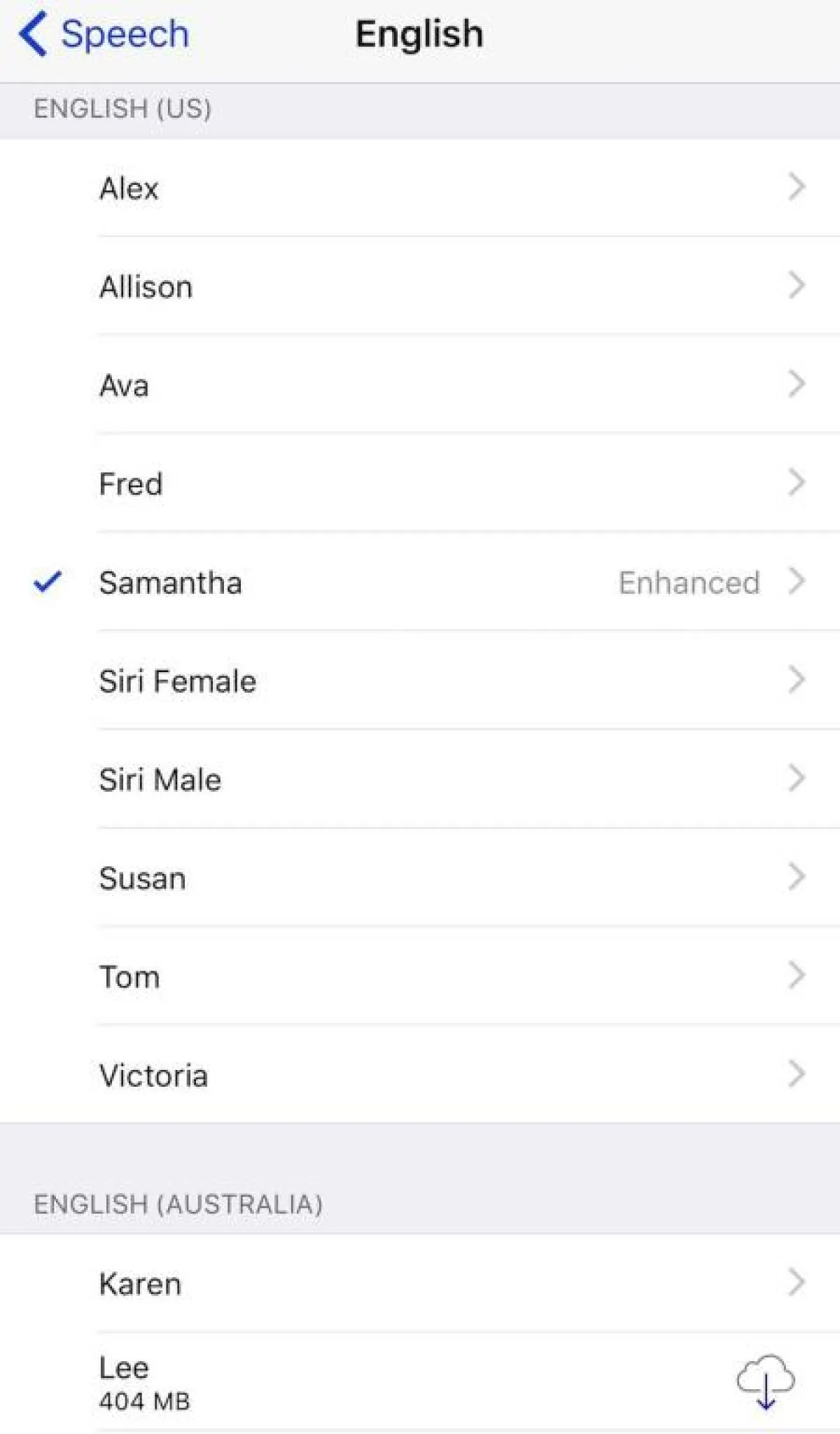 يمكنك توفير مساحة عن طريق حذف أصوات Siri التي لا تستخدمينها، لمعرفة أصوات Siri التي تم تنزيلها على iPhone، انتقلي إلى تطبيق الإعدادات > عام> Accessibility> VoiceOver> Speech. بعض الأصوات تضيف ما يصل إلى مئات ميغابايت، يمكنك حذفها من خلال النقر على اسم الصوت والنقر على «تعديل» ثم النقر على «حذف».