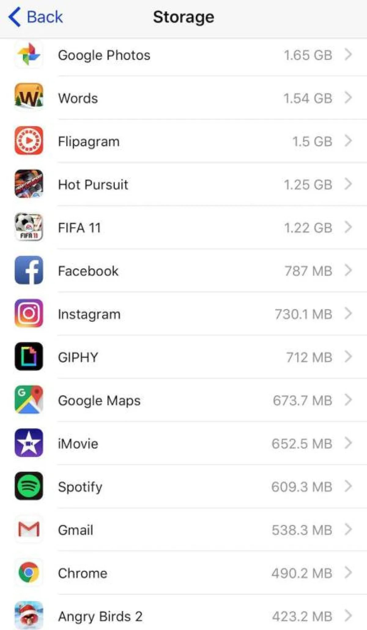 إحدى أسرع الطرق لتوفير المساحة هي عن طريق حذف التطبيقات التي لم تعد تستخدمينها بعد الآن، ضعي في اعتبارك أنه يمكنك دائمًا إعادة تنزيل هذه التطبيقات مرة أخرى مجانًا إذا كنت تريدين إعادتها، يمكنك معرفة التطبيقات التي تشغل أكبر قدر من المساحة من خلال الانتقال إلى الإعدادات> عام> التخزين واستخدام iCloud> إدارة التخزين أسفل قسم التخزين.