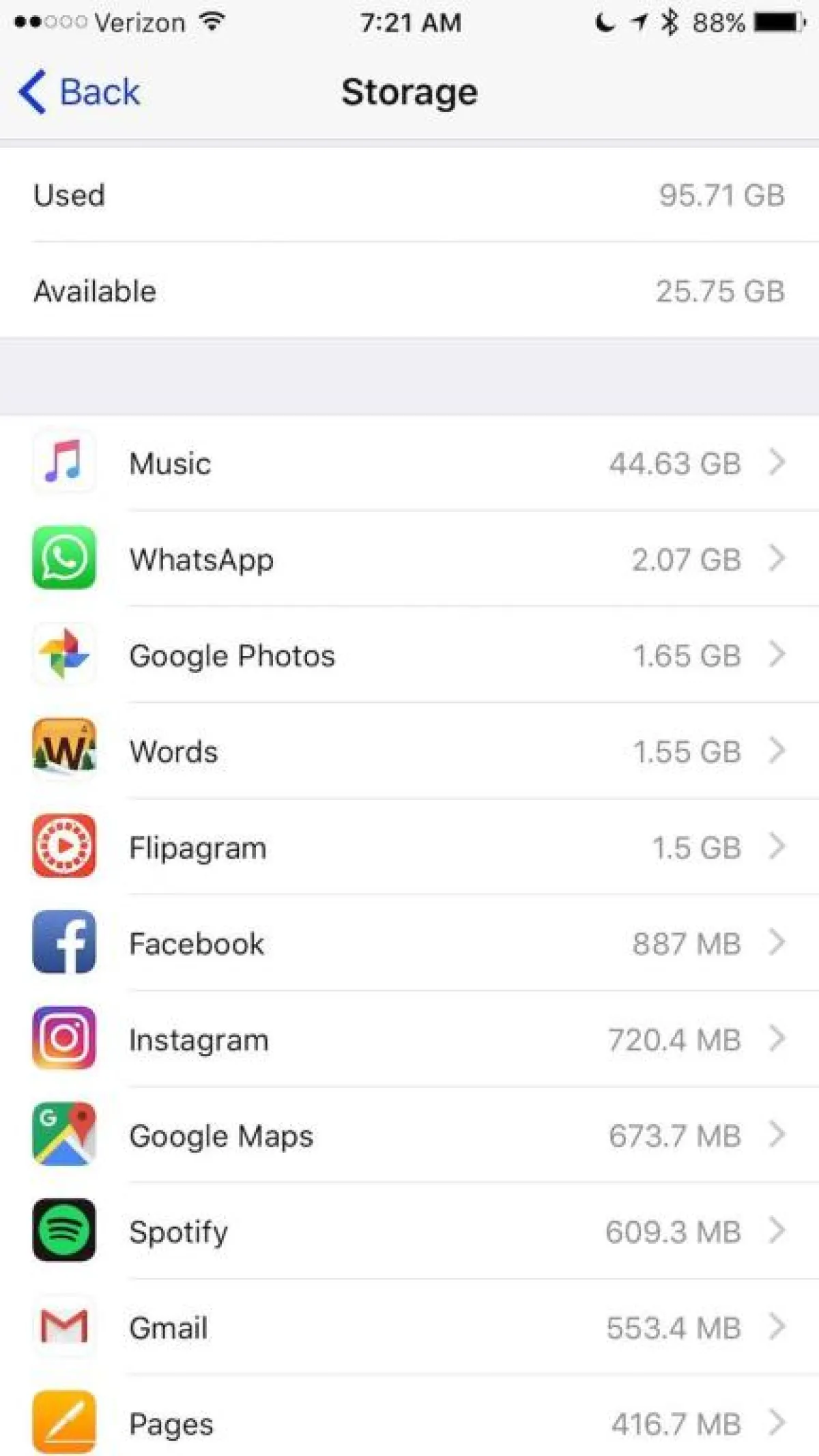 كلما استخدمت تطبيقًا على جهاز iPhone، زاد حجم المستندات والبيانات (ذاكرة التخزين المؤقت). يمكنك معرفة مقدار التخزين الذي تستهلكه المستندات والبيانات لكل تطبيق من خلال الانتقال إلى الإعدادات > عام> التخزين واستخدام iCloud> إدارة التخزين ضمن سعة التخزين> النقر على التطبيق المحدد الذي تريدين رؤيته.