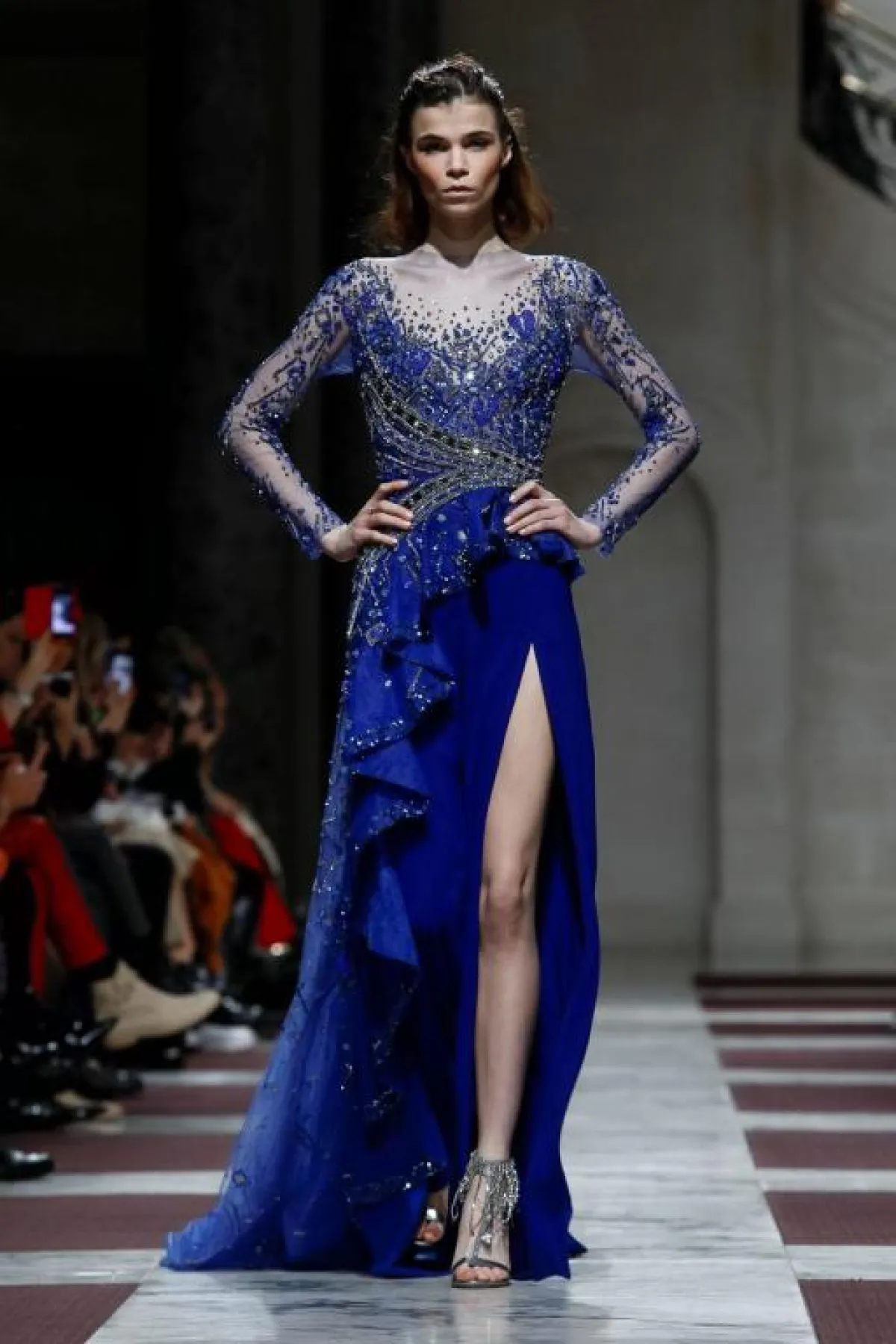 * الفستان الأوف شولدر الذي يكون فيه فتحة لفوق الركبة بالطول، يمكن أن يتكفل مصمم الأزياء بغصافة خامة من القماش السميك ليتناسب