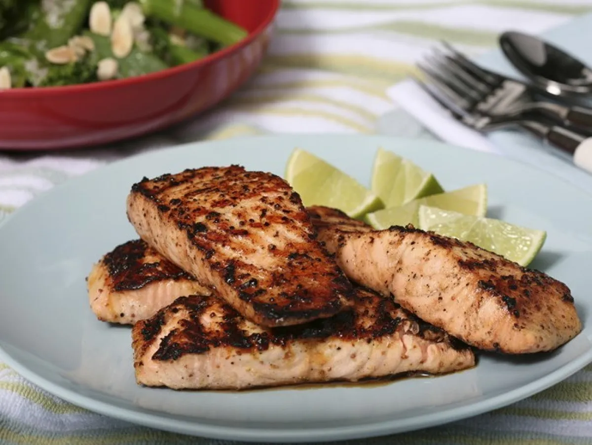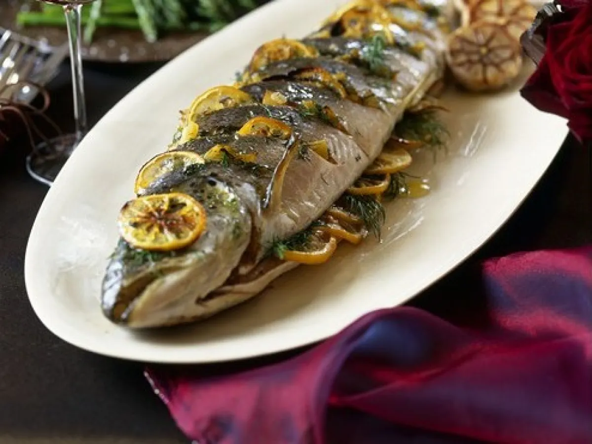 6- تقدّم السمكة مع السلطة و عصير الحامض.