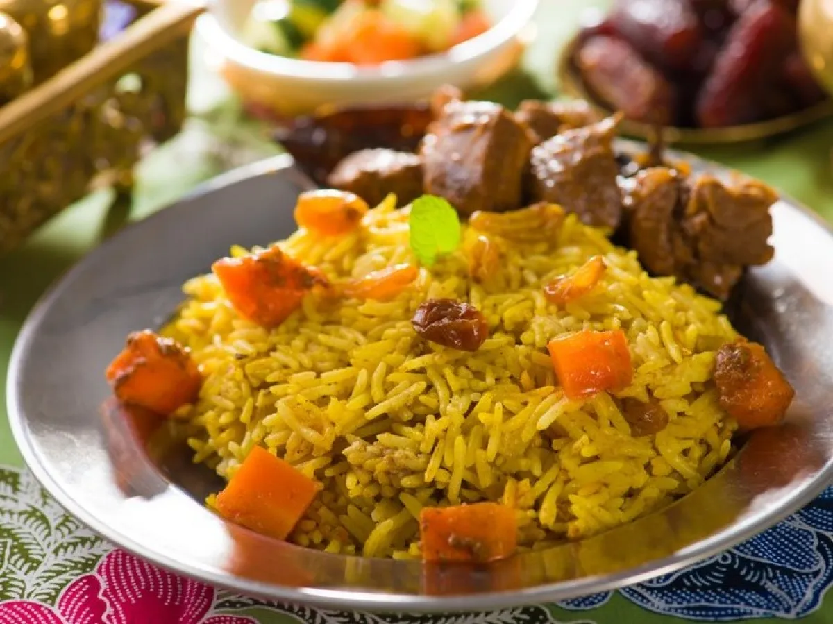 3- يدع هذا المزيج إلى أن ينضج اللحم، ثم يضاف الأرز، ويدع المزيج على النار حتى نضوج كلّ المكوّنات، وتبخّر الماء.