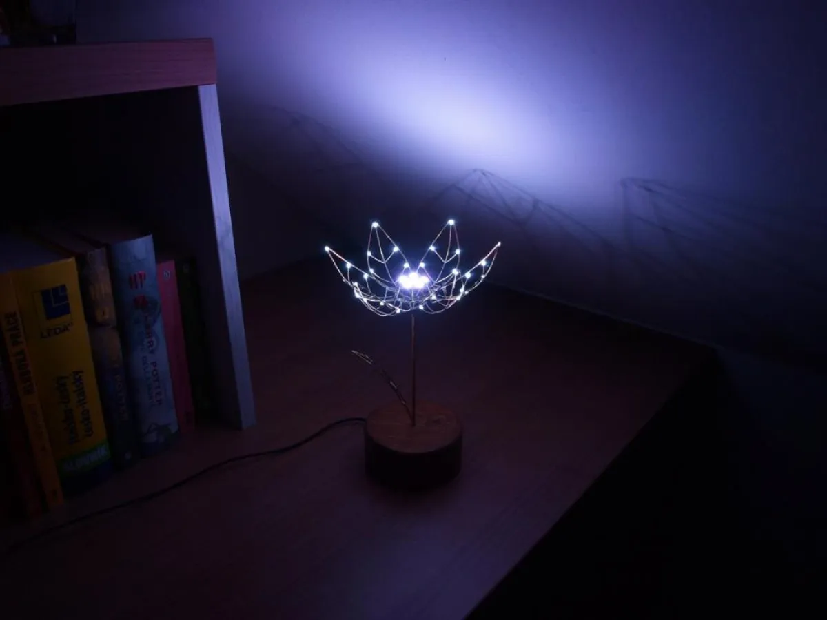 وتعمل الوردة الميكانيكية من خلال توصيلها بالكهرباء ولمسها فقط حتى تتفتح، وتخرج منها الألوان، وبلمسة واحدة أخرى يمكن إطفاؤها.