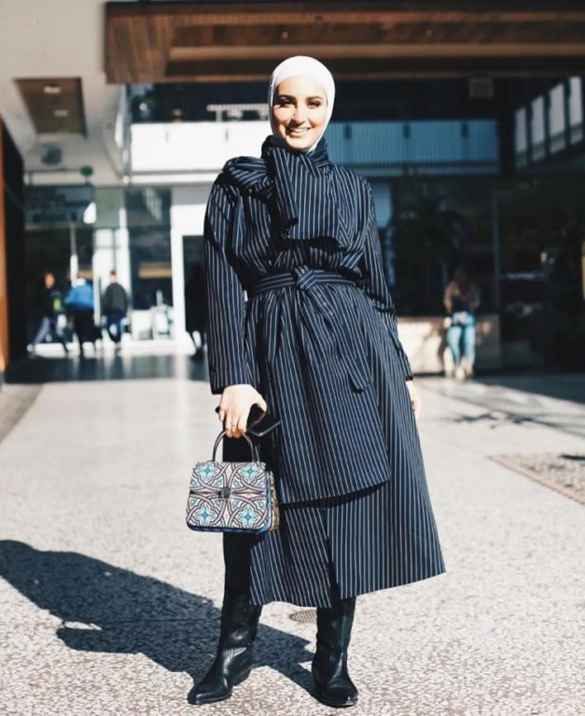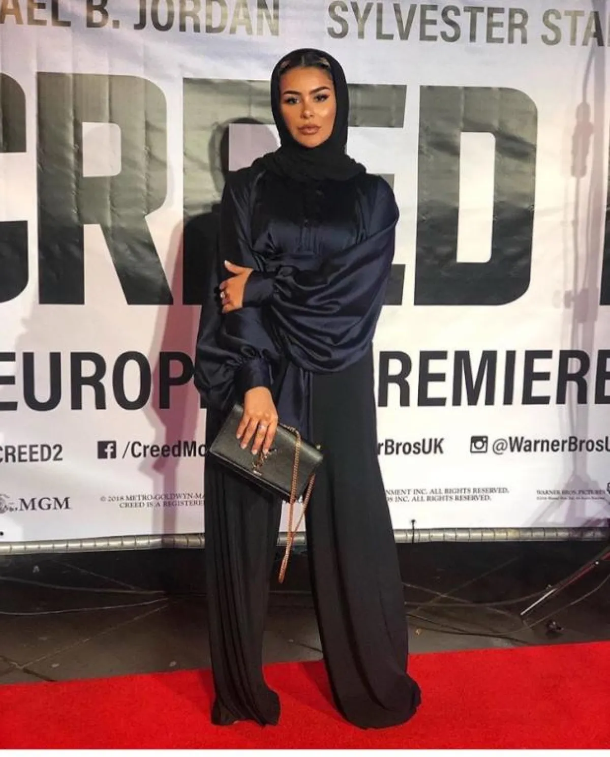 بشكل أكثر هدوءًا، اعتمدت الفاشينيستا دلال الدوب على بنطلون من الصوف الأسود، وجاكيت بليزر من اللون نفسه مع أزرار ذهبية، اختارت طرحتها البيضاء، لكنها أبقت لون الحذاء بالأسود، للوك يجمع بين الكلاسيكية والكاجوال، تبدين مع هذا اللوك رشيقة ومترفة.
