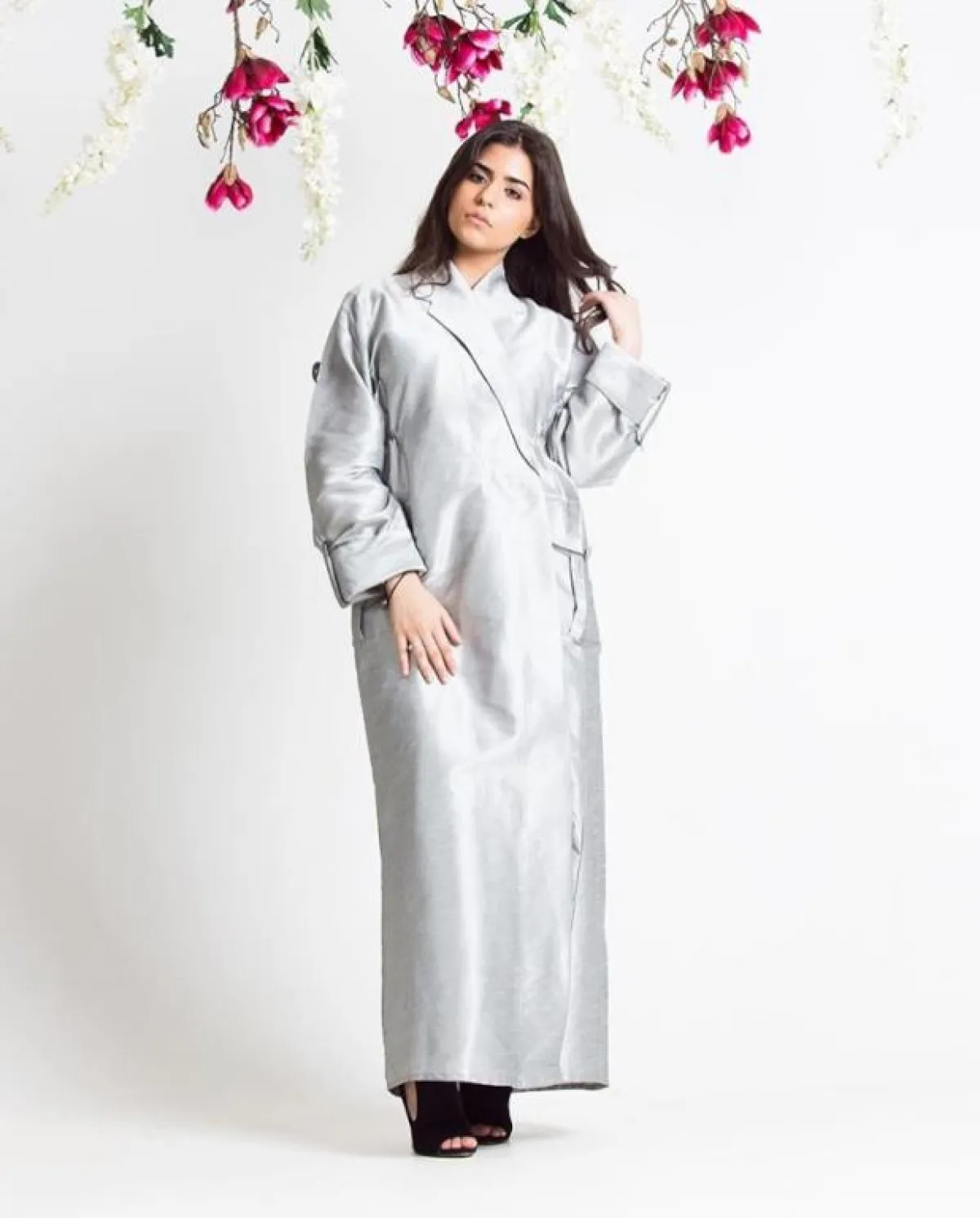 يمكنكِ بكل بساطة تطبيق صيحة الميتالك العصرية بطريقة أكثر ذكاءً، باعتماد خامة الساتان الحادة والتي تناسب كل أجسام الصبايا، بحيث تخفي عيوب الجسم، مع ألوان الميتالك الذهبية أو الفضية كالموديل من عبايات السلطانة Alsultana، اختاريها لمناسباتكِ الكلاسيكية مع الكعب العالي الشفاف، والكلتش المطرز بالأحجار.