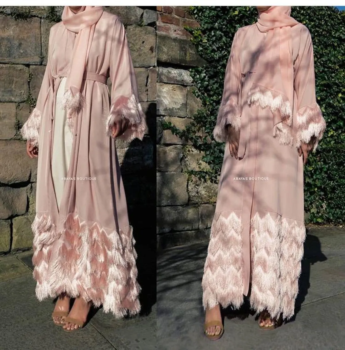 موضة الشراشيب أصبحت أساسية بغالبية الصيحات المختلفة في السنوات الأخيرة الماضية، وطالت كذلك موديلات العبايات، اعتمديها بطريقة ذكية للشراشيب الطبقية على العباية، لتمنحكِ طولًا وأناقة، كالعباية من عبايات بوتيك Abayas Boutique، نسقيها مع كلتش أنيق مطرز بالشراشيب أيضًا، أو اكسسوارات بالفكرة نفسها للمسة متناغمة مع فكرة العباية.