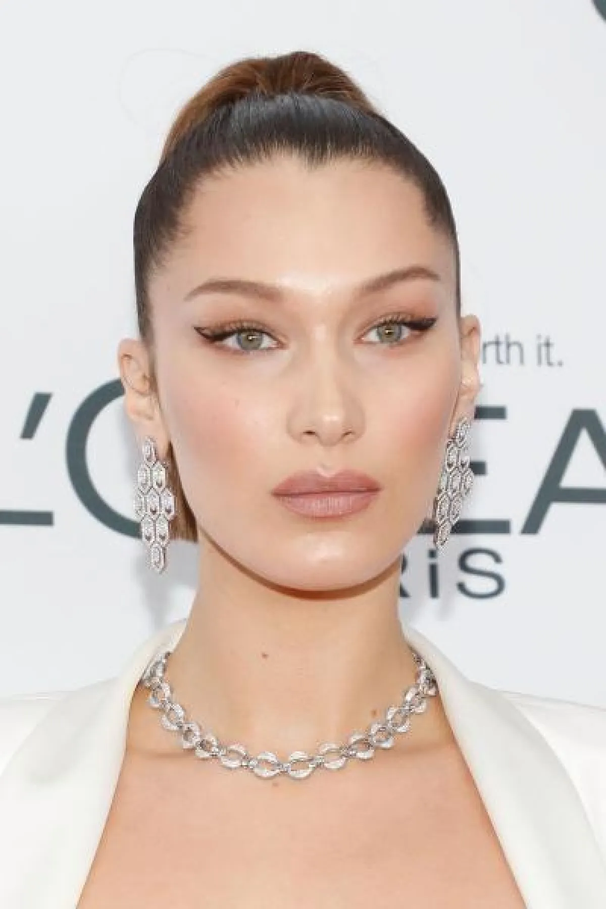 امنحي عينيكِ خطّاً مجنّحاً مزدوجاً بأسلوب بيلا حديد Bella Hadid مع ظلال عيون ذهبيّة عند الزوايا الخارجيّة للعينين واختاري النغمة الذهبيّة نفسها البراقة للوجنتين والعينين. مكياج ناعم آسر وعصريّ! جرّبي قلم الآيلاينر Charlotte Tilbury The Feline Flick .