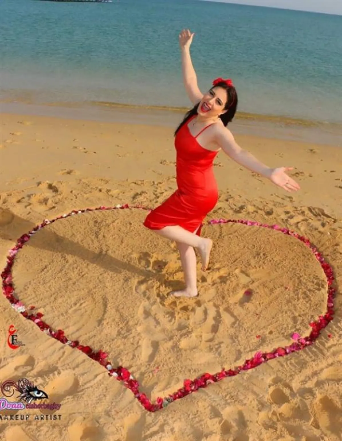 الفنانة ميرنا وليد الغائبة عن الأنظار منذ فترة طويلة، خضعت هي الأخرى لجلسة تصوير على البحر بفستان أحمر، احتفالًا بيوم الحب.