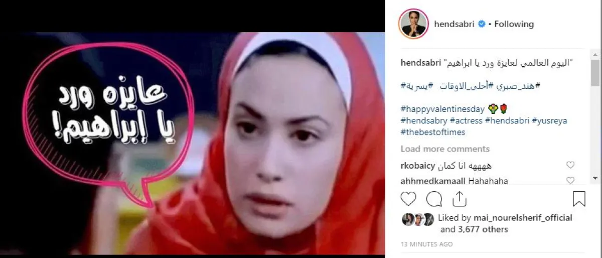 الفنانة هند صبري أعادت للأذهان جملتها الشهيرة في فيلم "أحلى الأوقات"، وشاركت جمهورها الاحتفال بقولها النهارده اليوم العالمي لعايزة ورد يا إبراهيم، علمًا أنها أكثر الجمل المقتبسة عبر مواقع التواصل الاجتماعي للشكوى من تراجع رومانسية الرجال العرب.